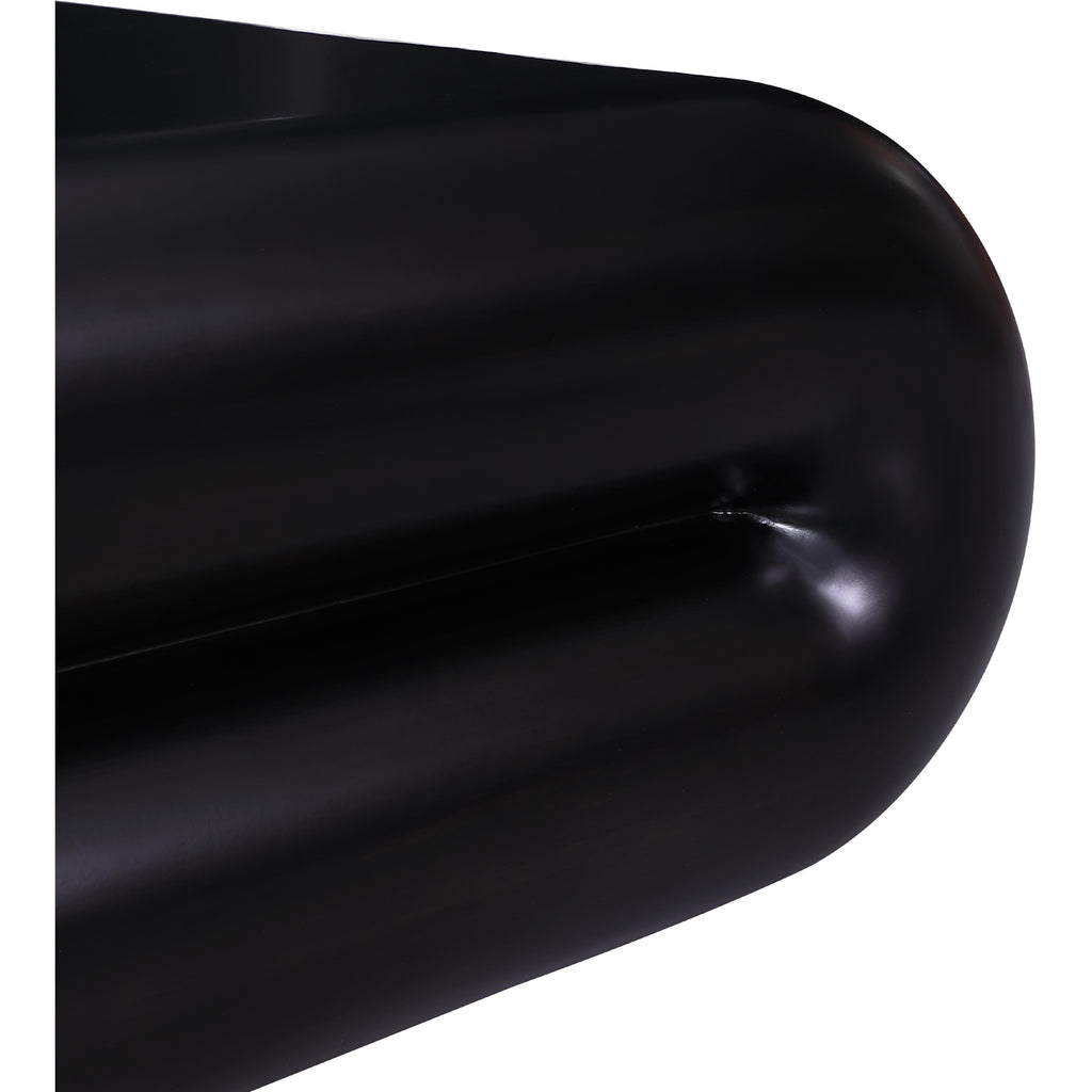 Impress family and guests alike with your modish tastes when you bring home this Enigma coffee table. This attention-grabbing coffee table looks like it was plucked from an art gallery and deposited in your living room or den with its curvy design and painted veneer color in chic black. It's made to draw attention from every angle and is perfectly sized to hold a scrabble board or other game on family game night. Pair it with your favorite items from the Enigma collection for a cohesive look.