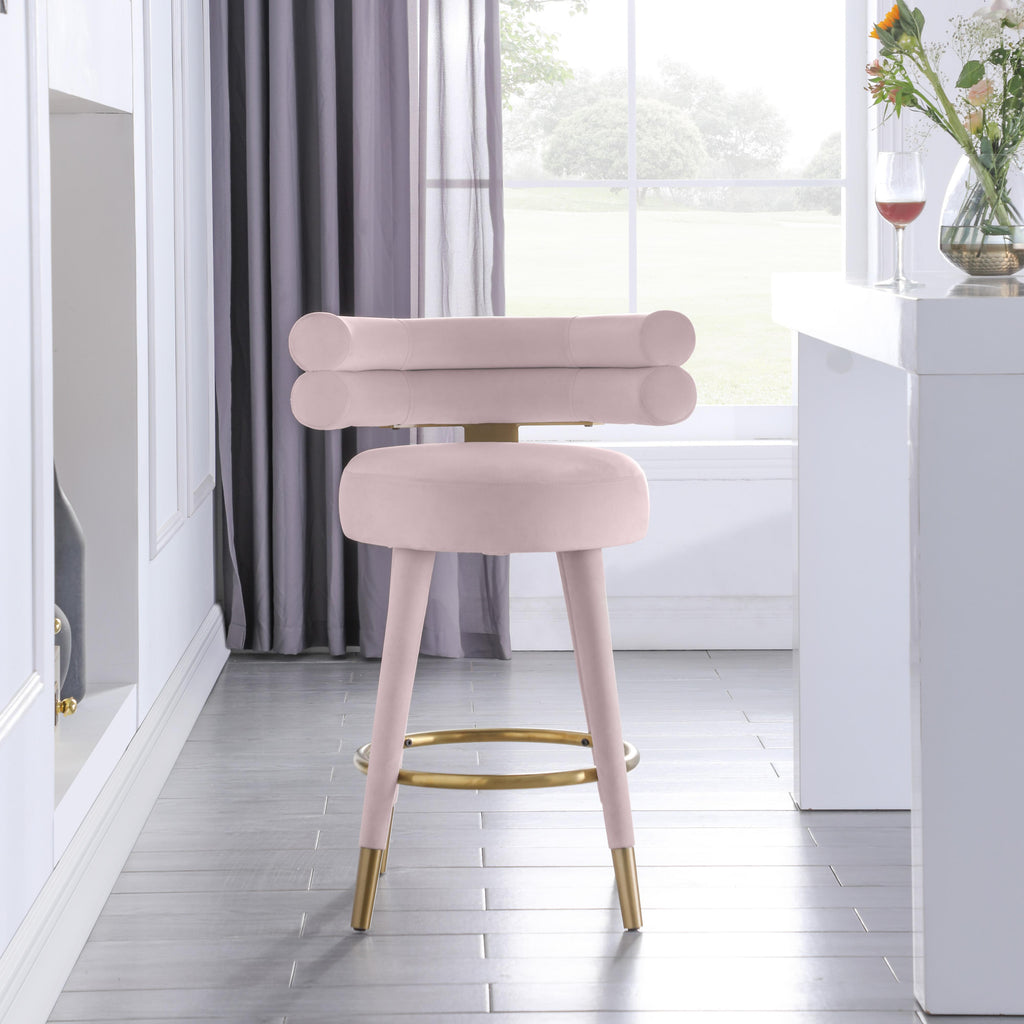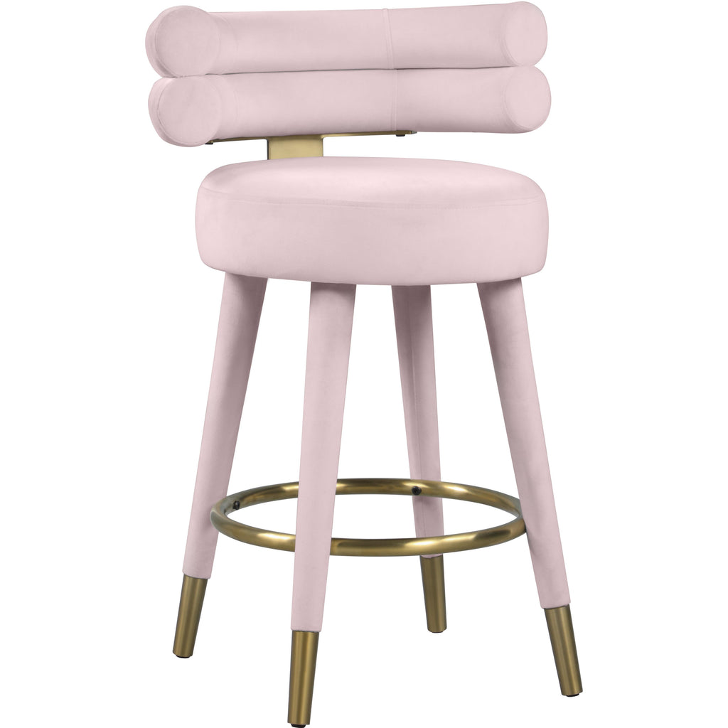 Elevate your home bar or counter area to a sophisticated new level with this Fitzroy velvet counter stool. Covered in chic and soft cream velvet upholstery, this glamourous counter-height stool offers a padded seat and back to cradle your body in comfort while you enjoy a cocktail or a plate of smiley faced pancakes. The upholstered legs are capped with a brushed gold metal cap for added contemporary panache.