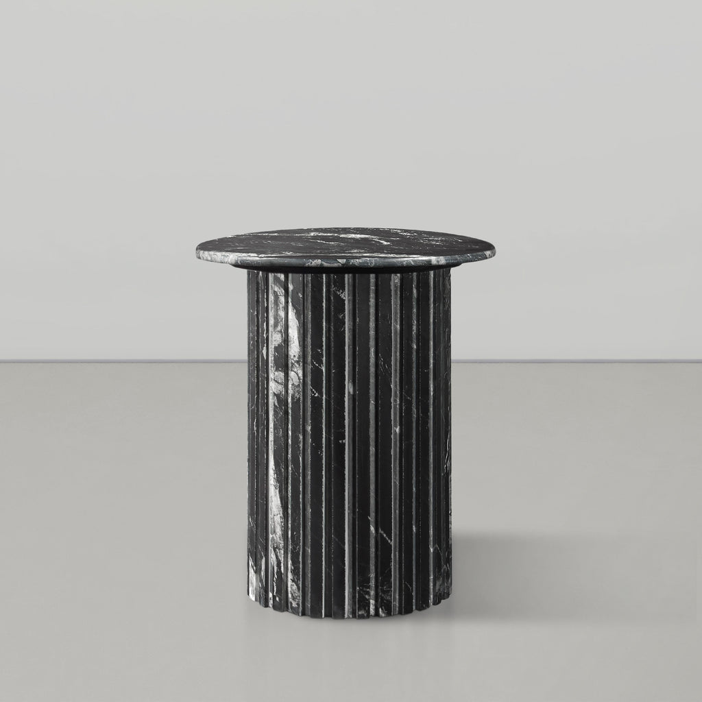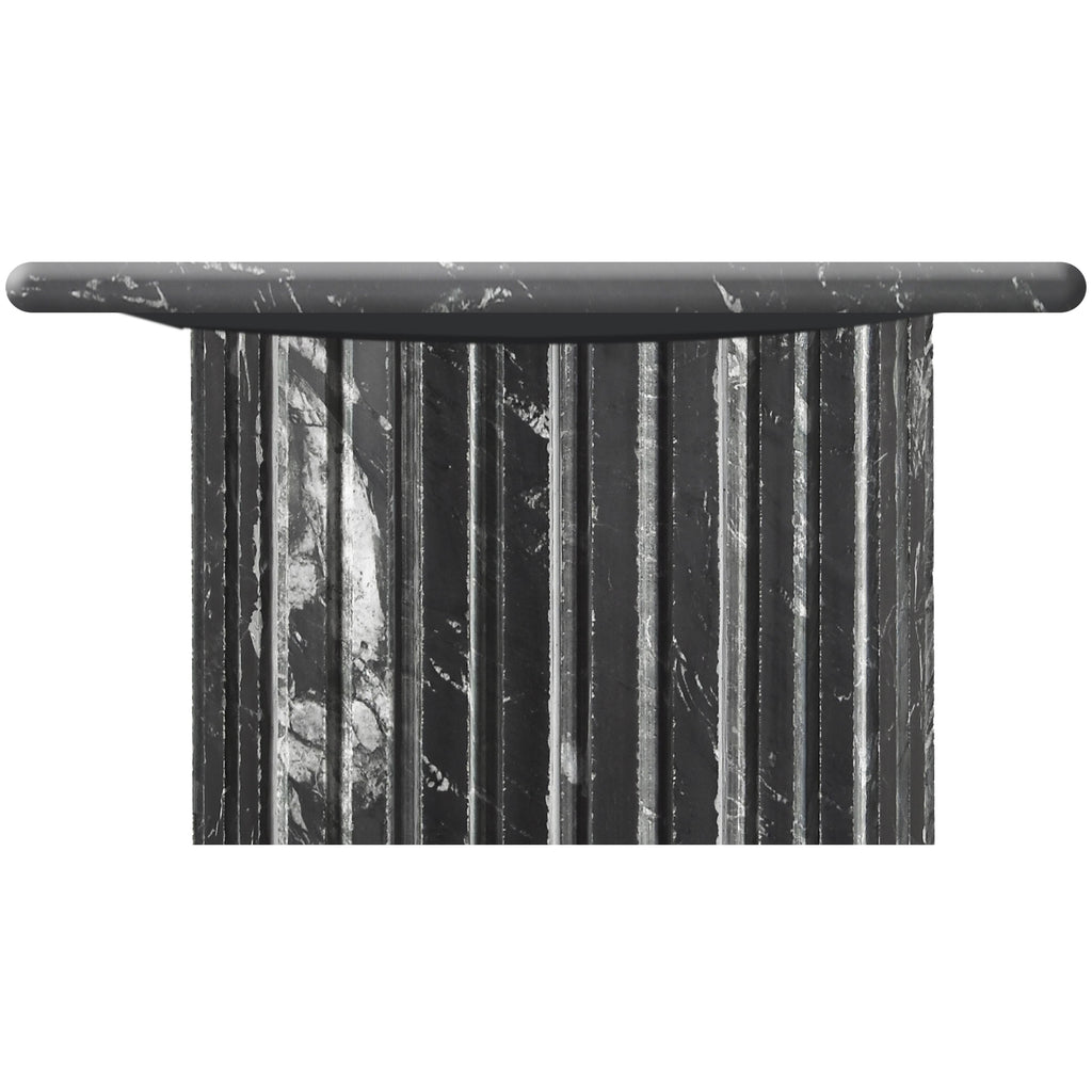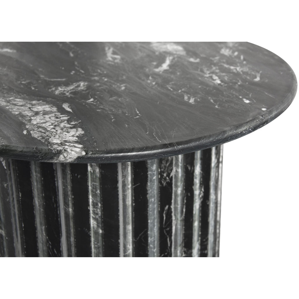 Add a refined look to your room with this handcrafted black Genoa end table, a stunning masterpiece that marries elegance and practicality. Crafted from genuine marble, each table is a unique work of art, featuring a black marble top with intricate white veining. The fluted marble base adds a touch of art deco design, making it a statement piece in any room and adding to its heirloom-quality design.