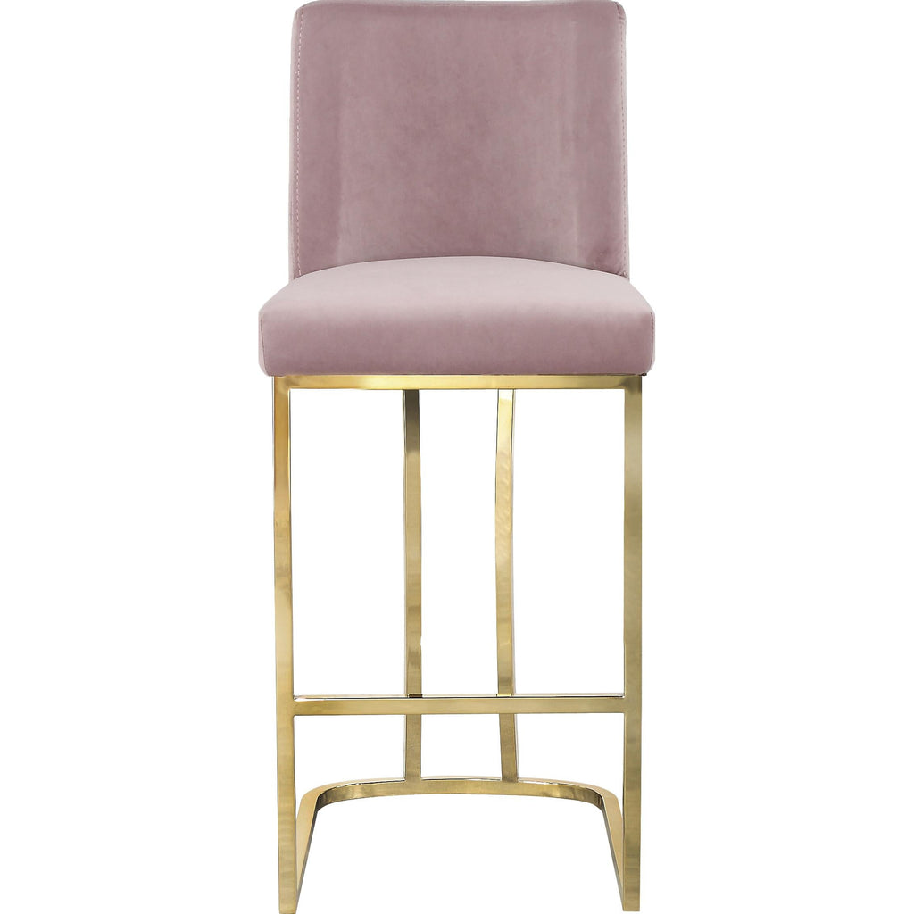 Make sure guests stay comfortable as they wine and dine from this Heidi Pink Velvet Stool. This stool has a sleek metal base finished in gold for a chic look and is upholstered in sumptuous pink velvet for a touch of glam. The upholstery is top quality and has a sleek, velvety feel against the skin for a refined and elegant presentation. The armless design facilitates conversation, and a footrail on the bottom gives you a spot to rest your feet while you dine.