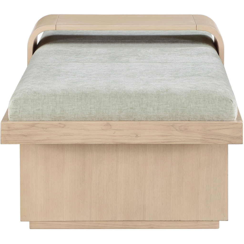 Bring home this versatile mint green Arlington chenille fabric bench, a fusion of comfort and functionality and form meets function. Upholstered in soft mint green chenille fabric that feels great against the skin and is easy to care for, this cozy, luxurious bench has a solid wood base with a rich natural finish for sturdiness, durability, and timeless appeal. A moveable sliding wooden tray on this mid-century modern bench offers both convenience and versatility for your space.