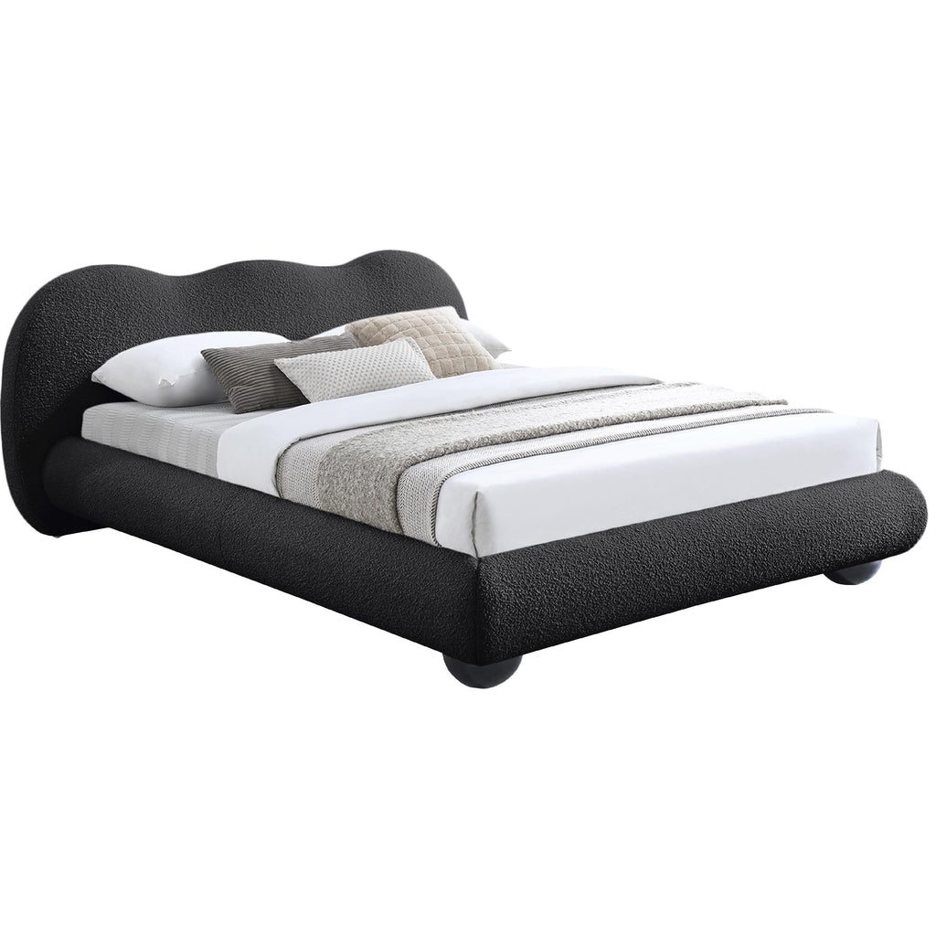 Escape to a haven of restful nights and luxurious mornings with the Hyde Boucle Fabric Bed, a versatile centerpiece that caters to your unique style and comfort preferences. The bed is enveloped in rich black boucle fabric, its sumptuous texture adding depth and dimension to your bedroom. This captivating material creates a striking contrast against lighter bedding and decor, ensuring your bed remains a stylish focal point regardless of your chosen aesthetic. The appeal doesn't stop at beauty. It offers the unique option of both natural finish and black finish solid wood legs, included with each bed. This allows you to effortlessly adapt the bed to your existing decor or even transform its entire look with a simple switch. Unwind, relax, and experience the true meaning of blissful sleep with the Hyde Boucle King-sized Fabric Bed.