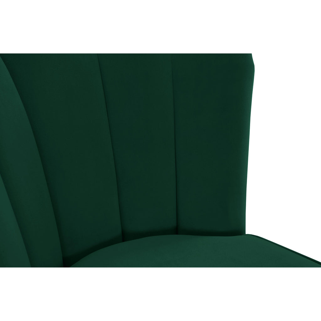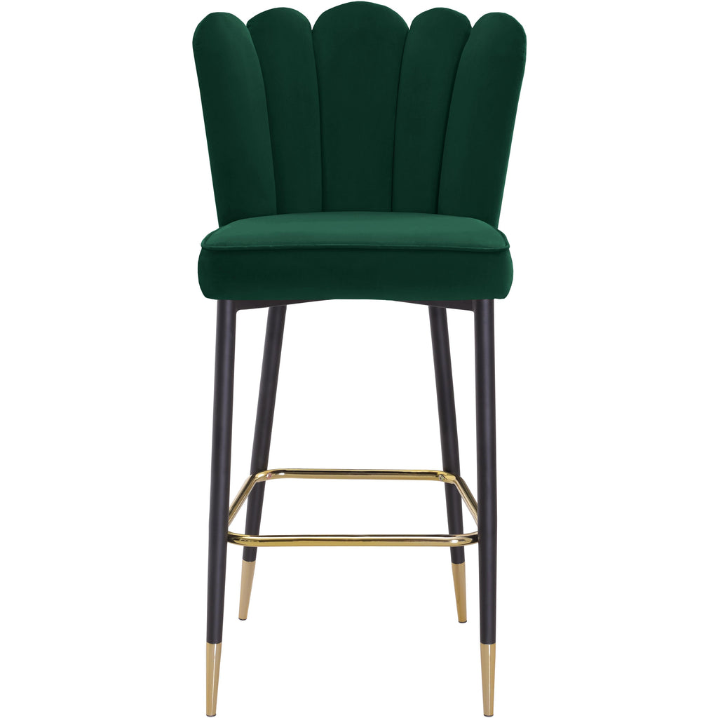 Fall fast and hard for the beautiful look of this Lily Bar Stool from Meridian Furniture. This lovely stool features a striking green velvet fan-style back with deep tufting that helps the padding inside stay full and aloft for added comfort. The cushioned seat and back are upholstered to the hilt for maximum luxury and beauty. Black metal legs with a matte finish and gold tips add contemporary appeal to this handsome stool whether used at the bar or kitchen counter.