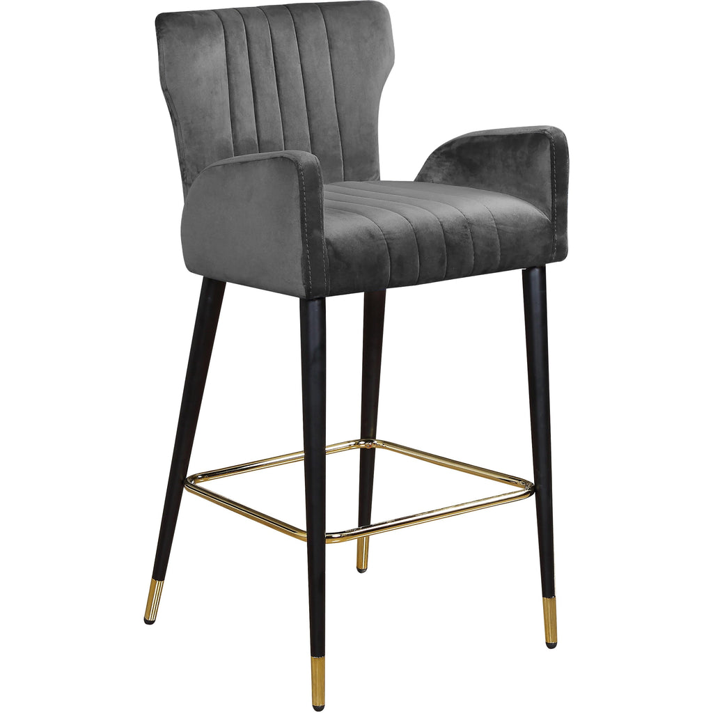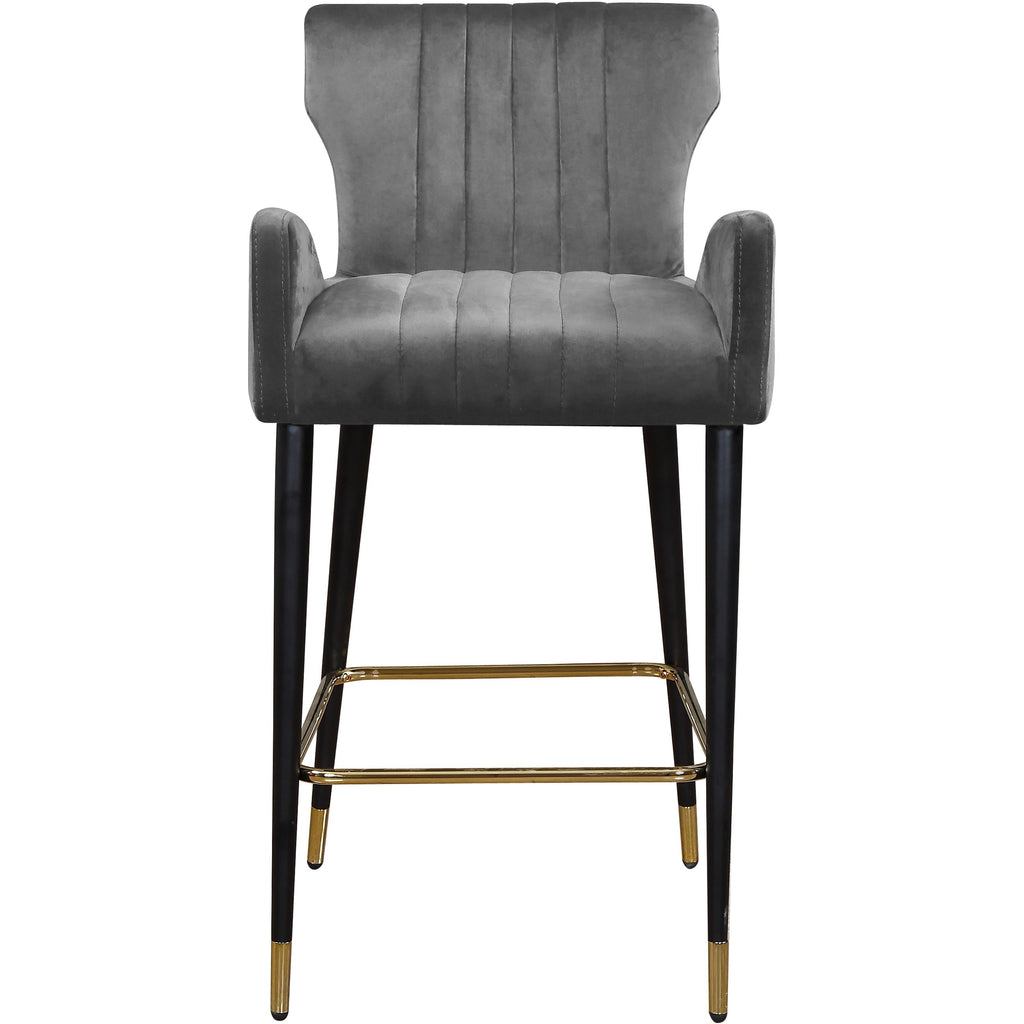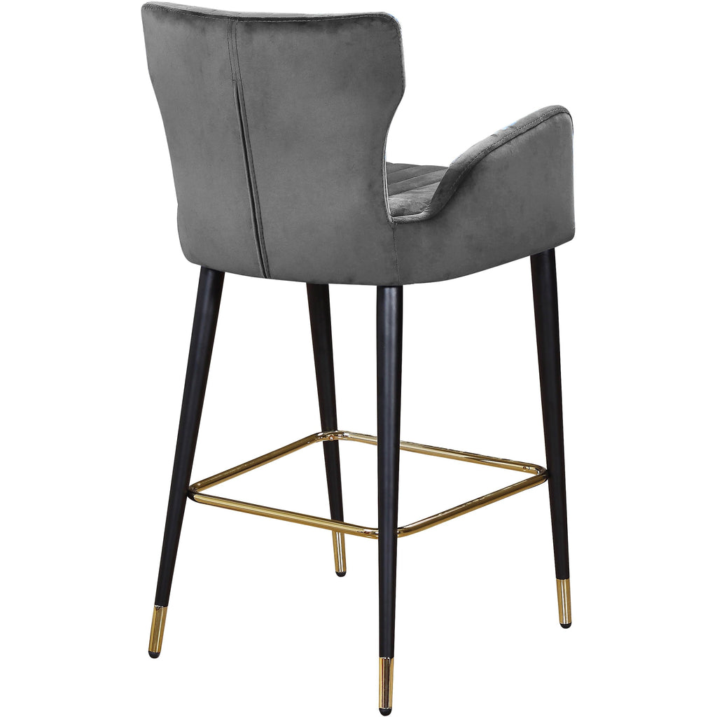Inject beautiful color into your counter or home bar area with the Luxe Grey Velvet Stool. Flared sides and a semi-high back provide support while you sit, so you stay comfortable for the whole meal. Channel tufting on the seat and back adds a dimensional effect while helping the padded cushions keep their loft and form. The metal legs are given a black finish for a contemporary look and goldtone hardware tips for a regal finish.