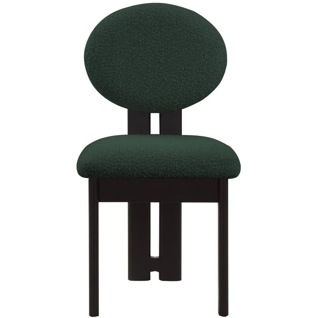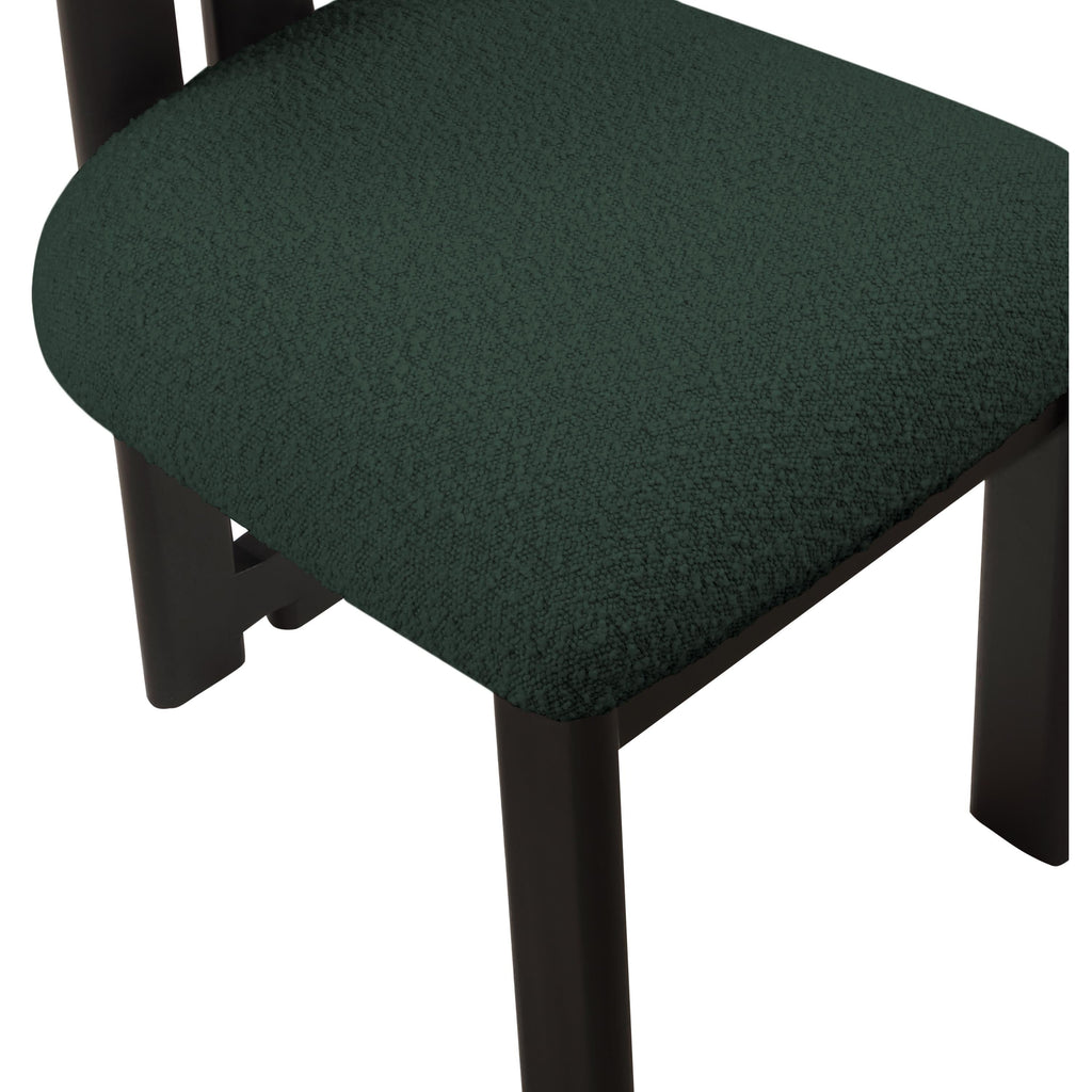 Elevate the look of your dining room with this Napa boucle fabric dining chair. This lovely chair features rich green boucle fabric upholstery on the seat and back, so guests feel super comfortable from the minute they sit down and throughout the whole meal. Rubberwood and other wood products make up the frame's construction, giving the chair a sturdy countenance to withstand long-term use in your busy dining room or eat-in kitchen area.