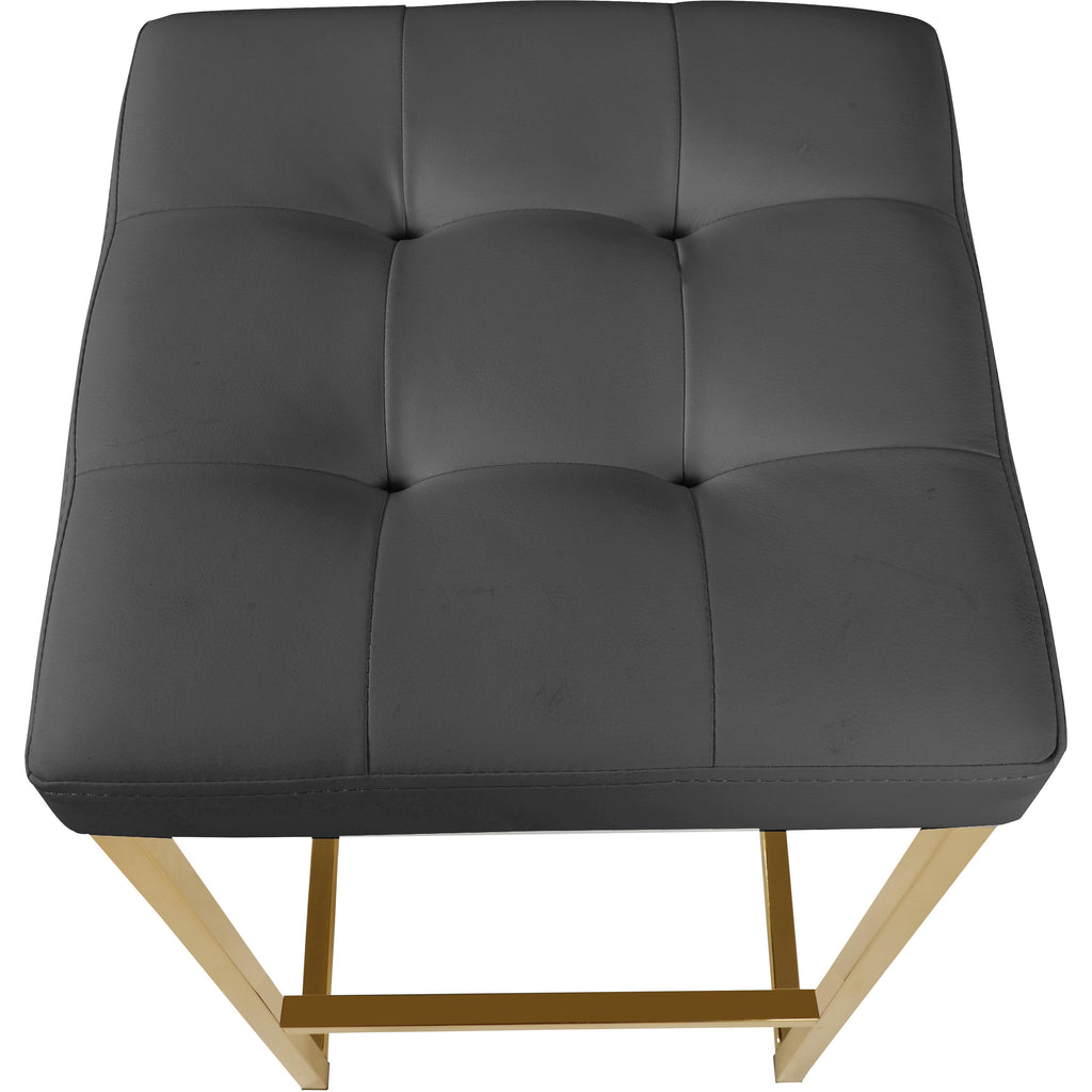 Bring modish style to your home bar or your kitchen counter when you add this lovely Nicola Grey Vegan Leather Counter Stool stool to the mix. This attention-commanding stool has a box modern shape that's well at home in contemporary decor settings. The base is made from steel for resilient strength and topped with a plump and inviting seat that's upholstered grey vegan leather for a rich, sumptuous look. Tufting on the seat helps it keep its shape through busy daily use.
