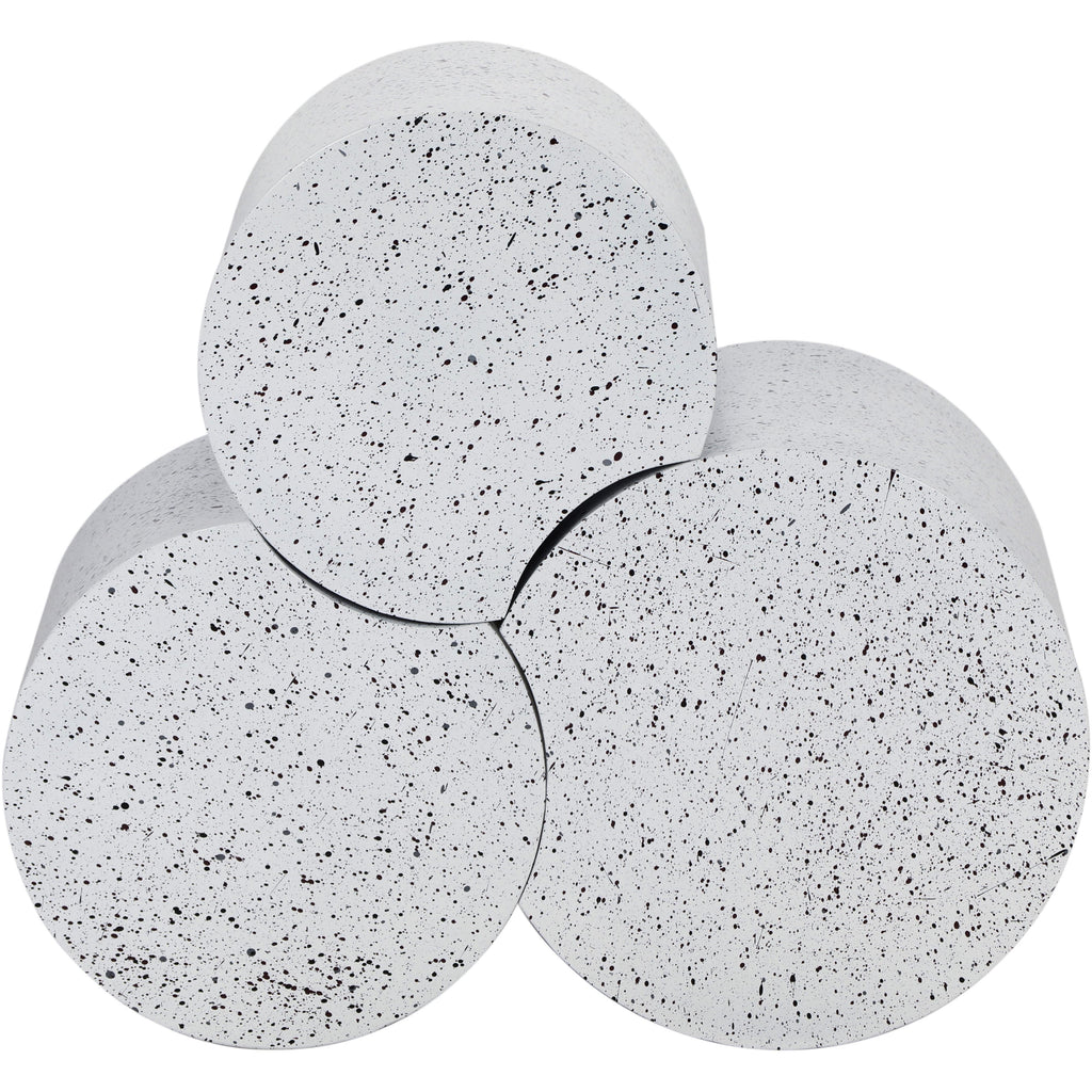 Beautify your room with this Dimple white coffee table. Crafted from white terrazo patterned iron metal, its modular shape allows you to connect as many as needed, offering versatility and style. With a contemporary nesting design, it adapts effortlessly to various spaces, whether used individually or in clusters. Perfect for adding both functionality and a modern aesthetic to your living area, this table promises to be a chic addition that enhances organization and visual appeal in any setting.