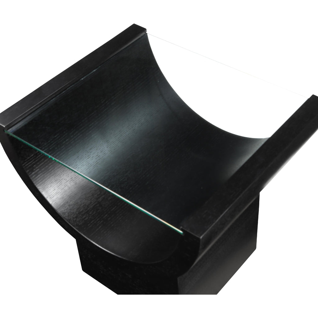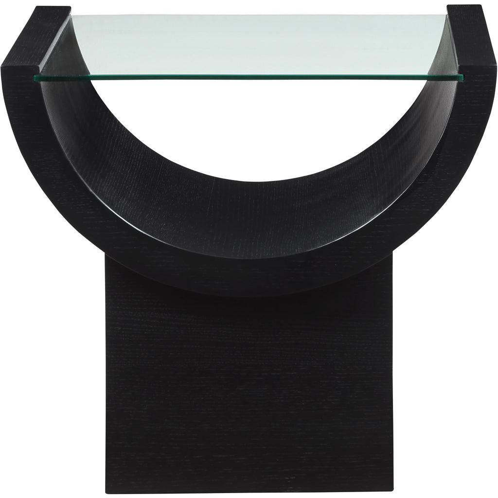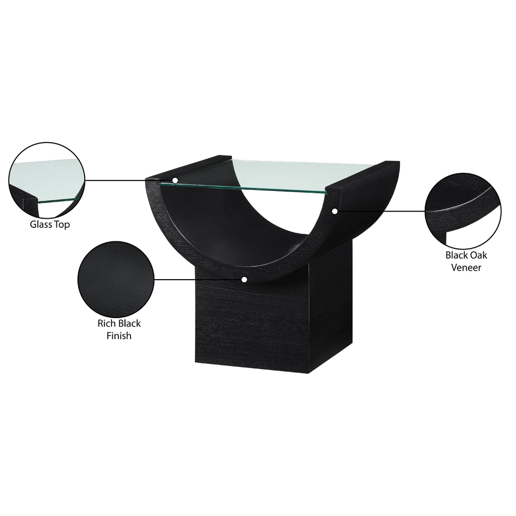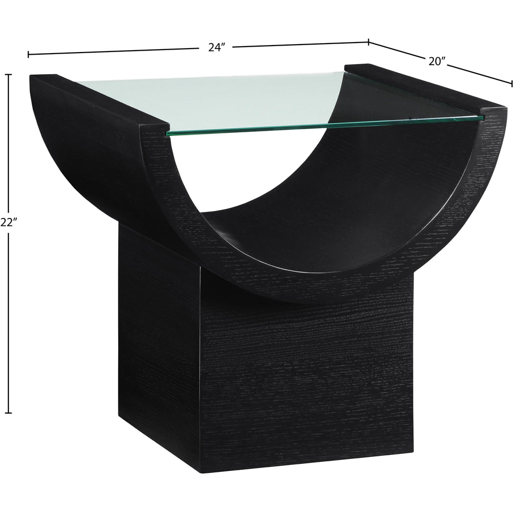 Channel the glamour of the Art Deco era with the Beverwil End Table, a captivating centerpiece that exudes timeless sophistication. This stunning table features a rich black finish that highlights the natural beauty of the oak veneer, creating a striking visual contrast. The tempered glass top adds an air of elegance and provides a clear surface for displaying your favorite decor items. The unique geometric design, reminiscent of the Art Deco period, infuses your space with a touch of vintage charm.