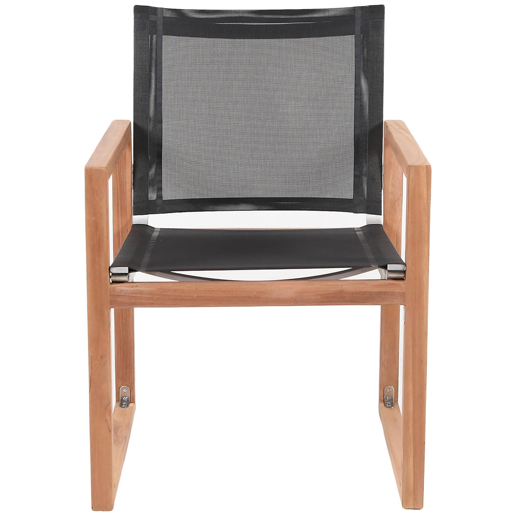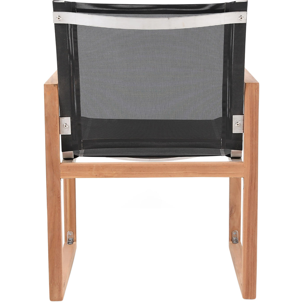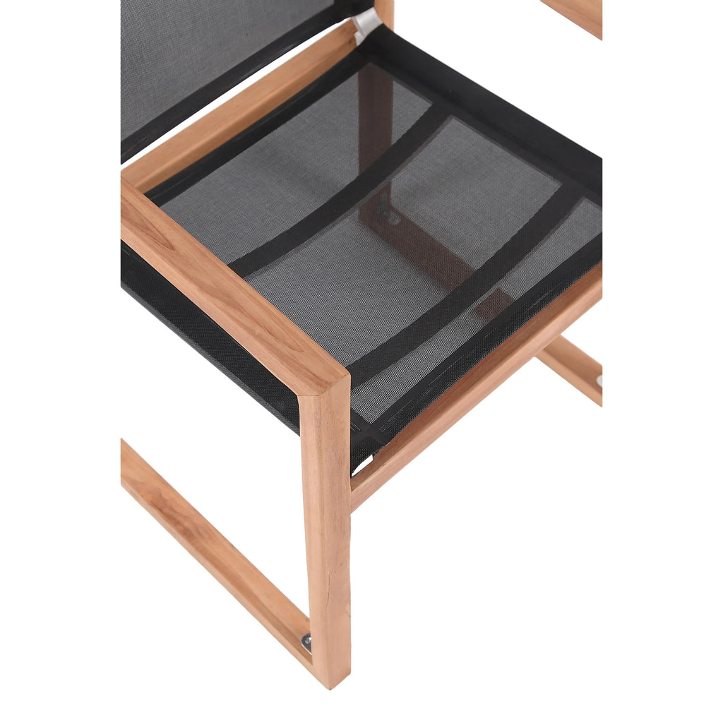 Make this Tulum teak outdoor patio dining chair the go to spot for relaxing and entertaining guest in your outdoor space. This chair features water resistant black mesh fabric making it the perfect spot to rest your feet and enjoy a tasty meal while you take in the sunrise. Teak construction makes it a tough addition for the patio or porch and gives it the longevity and durability it needs to weather the elements with beautiful ease. Pair it with other items from the Tulum collection for a look that impresses from every angle.