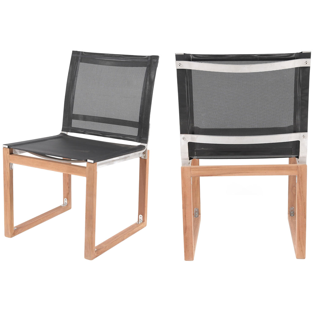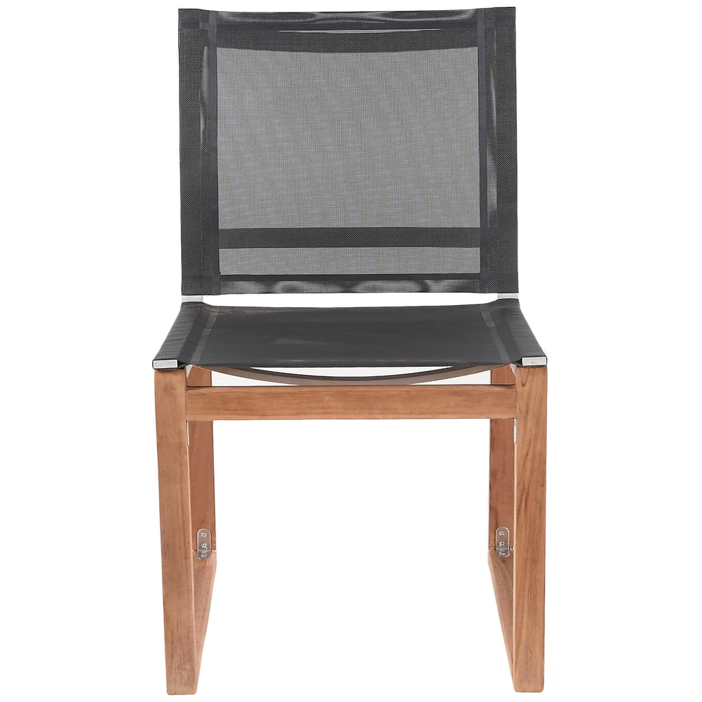 Make this Tulum teak outdoor patio dining chair the go to spot for relaxing and entertaining guest in your outdoor space. This chair features water resistant black mesh fabric making it the perfect spot to rest your feet and enjoy a tasty meal while you take in the sunrise. Teak construction makes it a tough addition for the patio or porch and gives it the longevity and durability it needs to weather the elements with beautiful ease. Pair it with other items from the Tulum collection for a look that impresses from every angle.