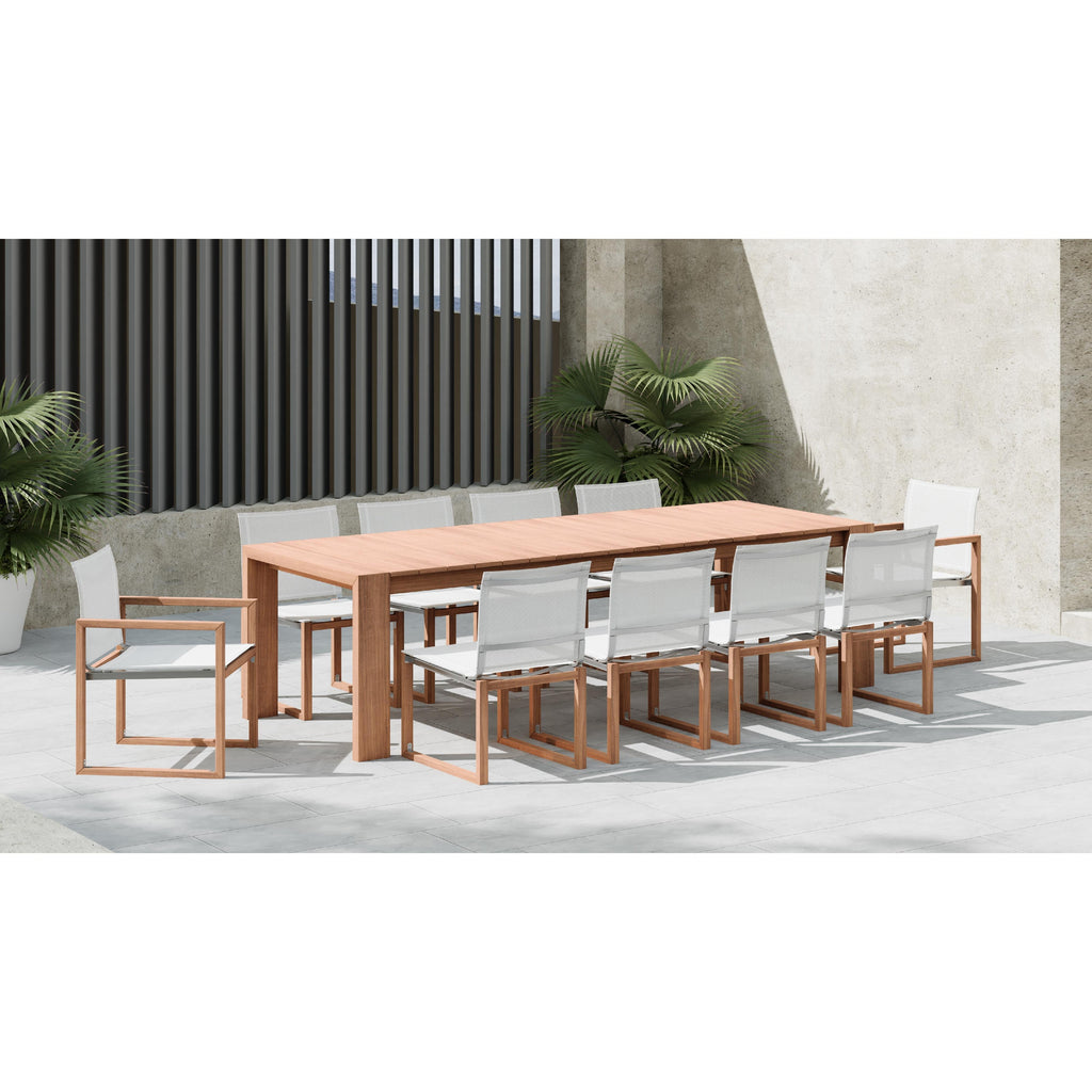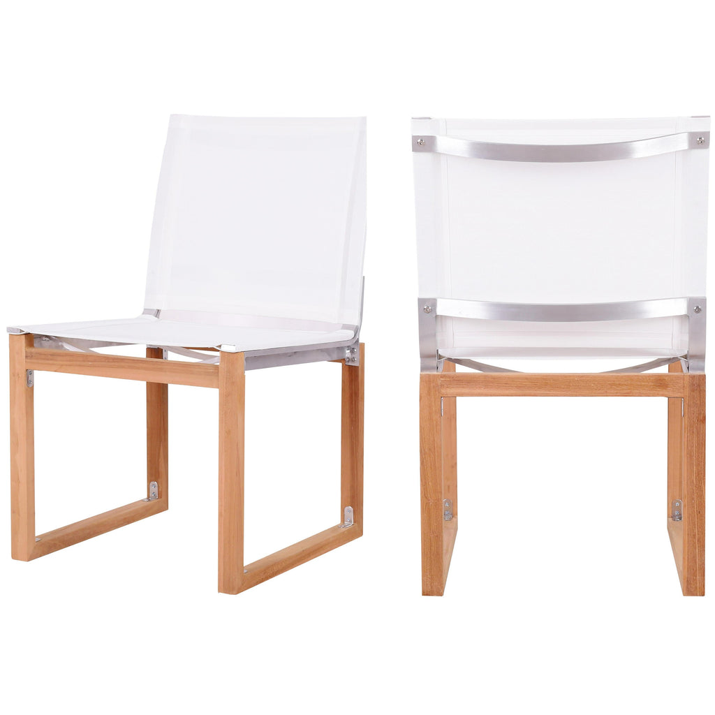 Make this Tulum teak outdoor patio dining chair the go to spot for relaxing and entertaining guest in your outdoor space. This chair features water resistant white mesh fabric making it the perfect spot to rest your feet and enjoy a tasty meal while you take in the sunrise. Teak construction makes it a tough addition for the patio or porch and gives it the longevity and durability it needs to weather the elements with beautiful ease. Pair it with other items from the Tulum collection for a look that impresses from every angle.