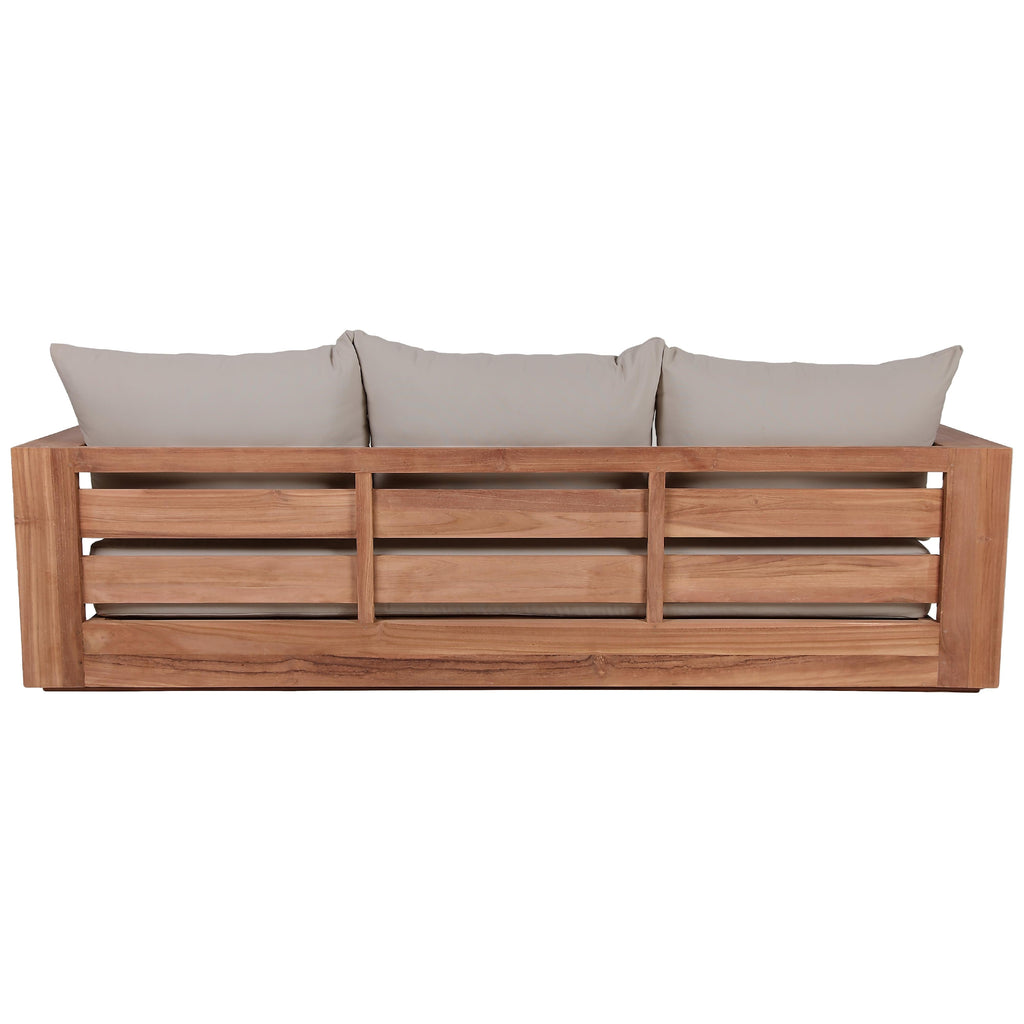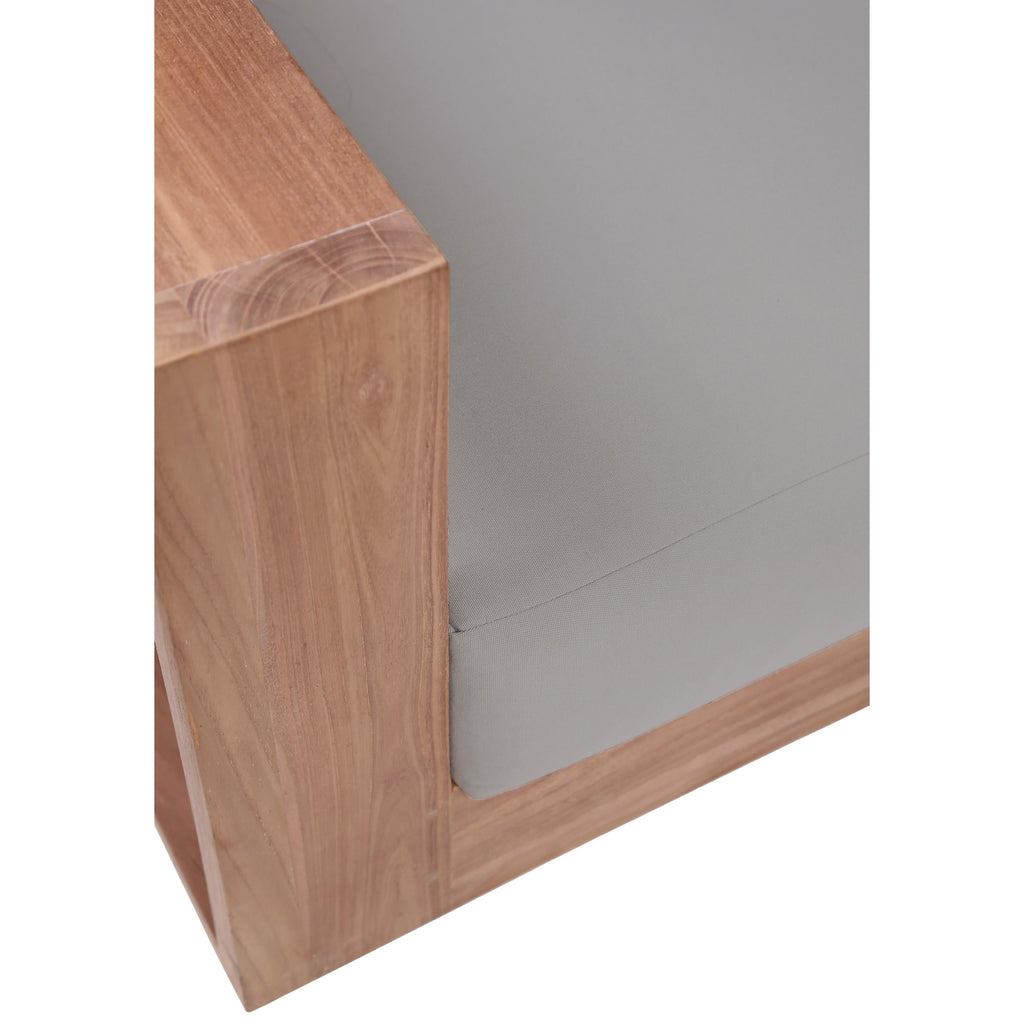 Make this Tulum teak outdoor patio sofa the go to spot for relaxing and entertaining guest in your outdoor space. This sofa features resilent water resistant grey fabric making it the perfect spot to rest your feet and enjoy the company of friends or family while you take in the sunrise. Teak construction makes it a tough addition for the patio or porch and gives it the longevity and durability it needs to weather the elements with beautiful ease. Pair it with other items from the Tulum collection for a look that impresses from every angle.