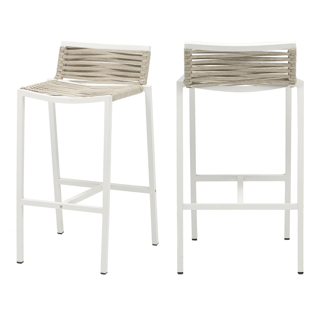 Bring the comfort of the indoors to your outdoor space with this Maldives outdoor patio barstool. This beautiful stool features a white aluminum frame with quality construction, so you can count on it weathering the outdoors without skipping a beat. A biege rope fabric seat and back supports you comfortably as you rest and relax under the sun, while the design gives definitive resort appeal.