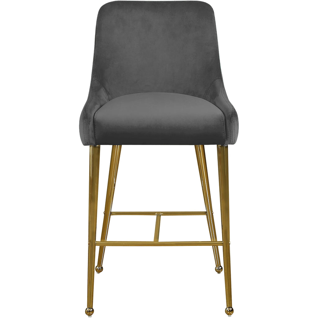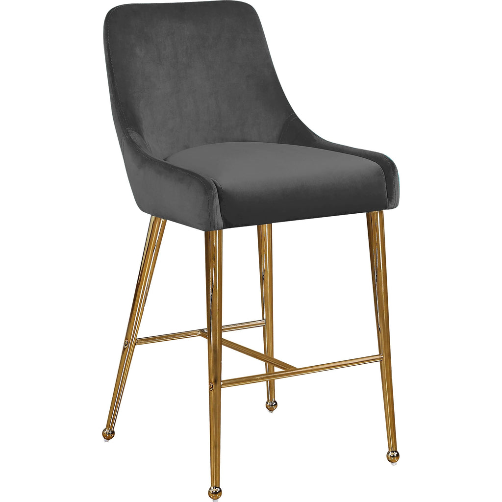 The home bar or kitchen counter gets a contemporary makeover with the addition of this Owen Grey Velvet Stool. Clean lines and a simple design make this stool nothing short of elegant. The grey velvet upholstery is sleek and svelte to the touch, revving up the comfort factor of this stunning stool. The polished gold legs have a ball design that's both modern and sophisticated, while a matching handle on the back adds to the overall modish feel of this delightful stool.