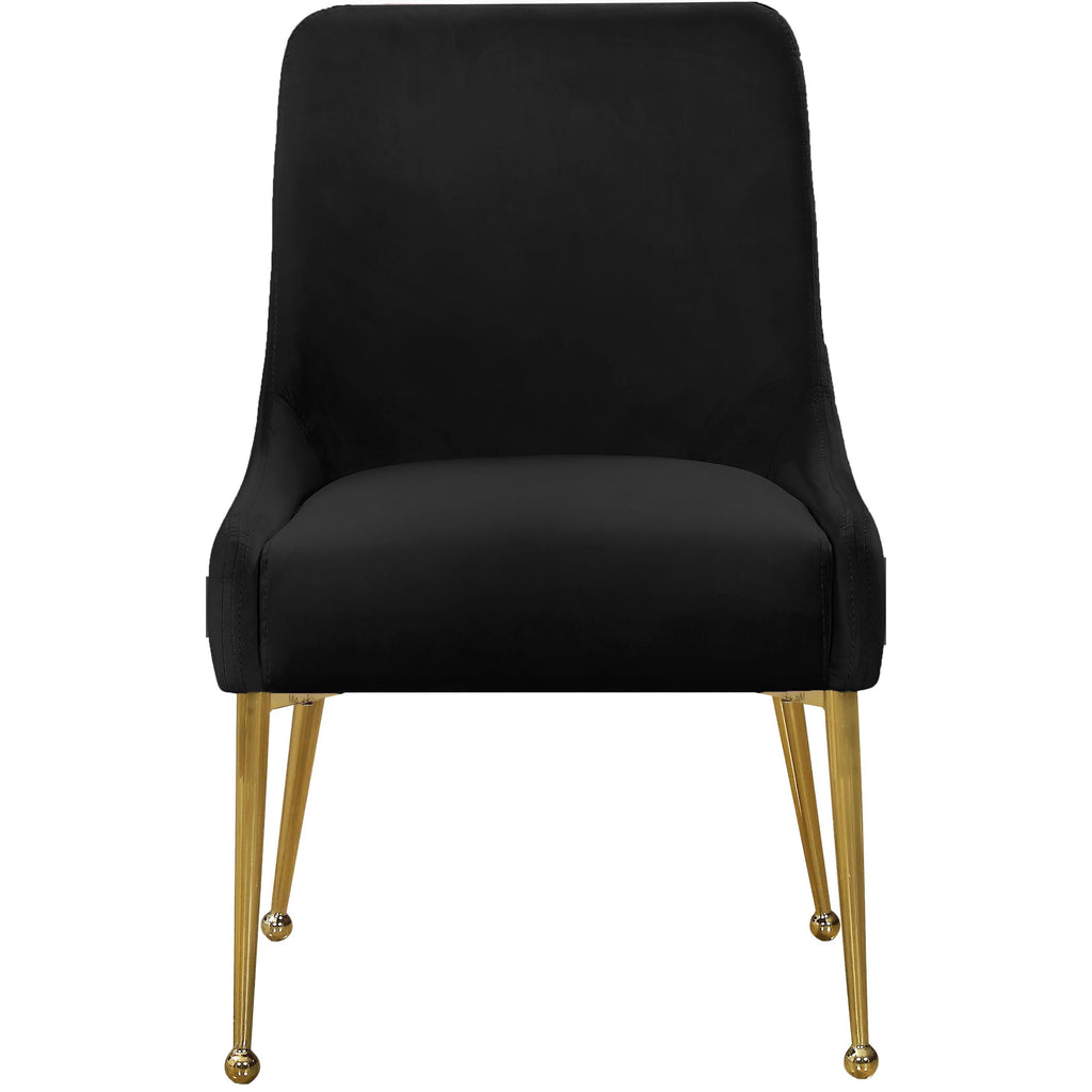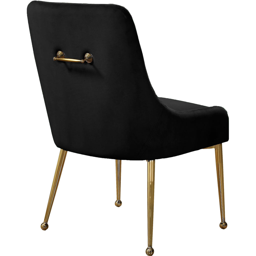 Revamp your dining space with this Owen Black Velvet Dining Chair. Posh velvet upholstery covers every inch of this chair, giving it a svelte look that's just the thing for modern decor. The polished gold legs have a ball design for added visual oomph, and a matching handle on the back adds an elegant detail while also providing an easy way to slide the chairs in and out from your choice of table.