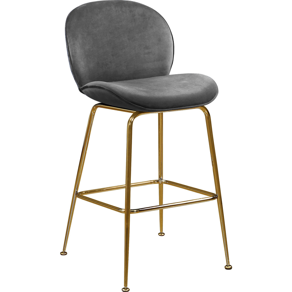 Rev up the wow factor in your space with this Paris Grey Velvet Counter Height Stool. The rounded back and minimalist frame lend it a modish feel, and the velvet upholstery is sleek to the touch, adding a comfortable edge to your home bar. The polished gold metal frame lends it a luxe feel, and the counter height makes it ideal for your kitchen counter if desired. A foot rail along the front adds stability to the stool while also giving you a place to rest your feet.