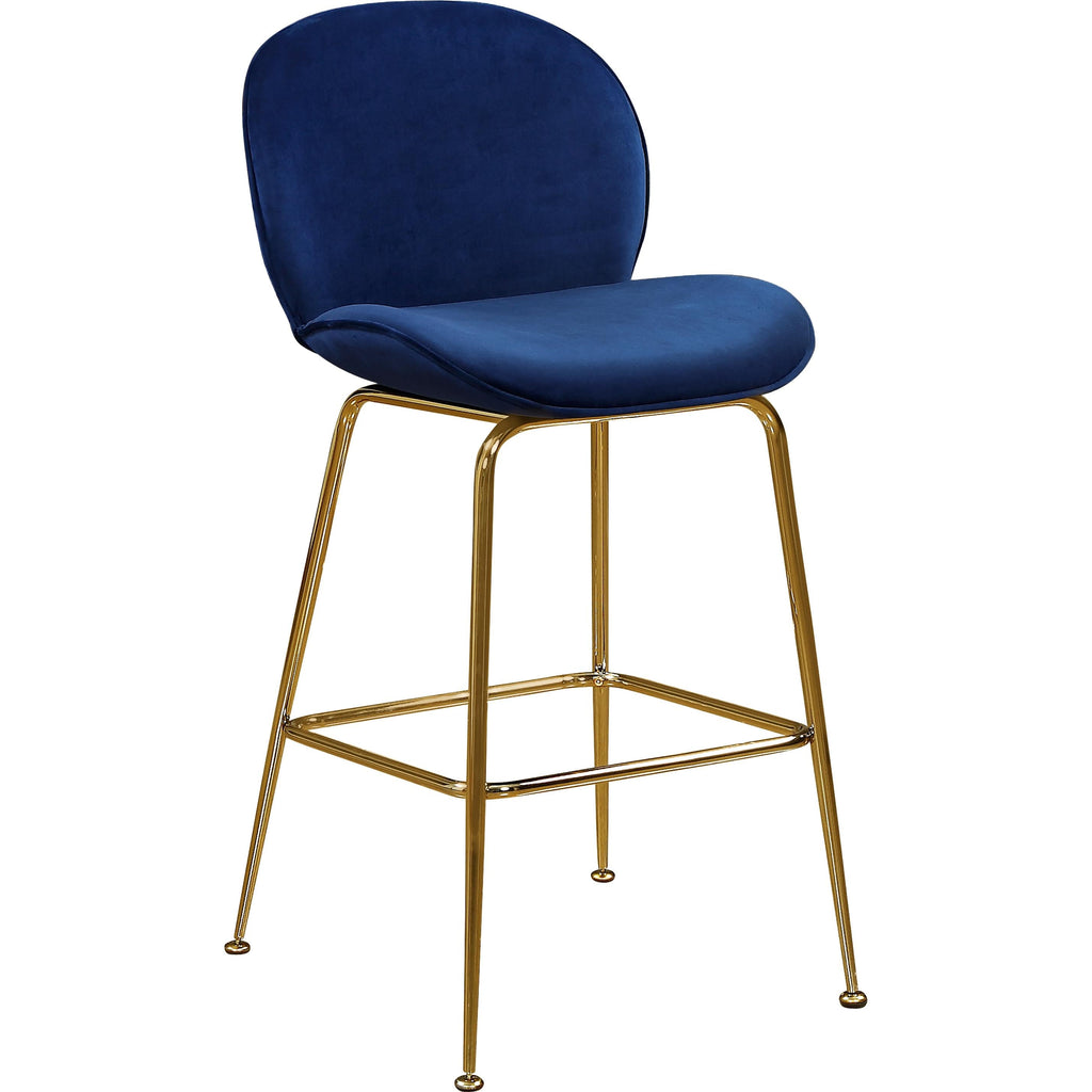Rev up the wow factor in your space with this Paris Navy Velvet Counter Height Stool. The rounded back and minimalist frame lend it a modish feel, and the velvet upholstery is sleek to the touch, adding a comfortable edge to your home bar. The polished gold metal frame lends it a luxe feel, and the counter height makes it ideal for your kitchen counter if desired. A foot rail along the front adds stability to the stool while also giving you a place to rest your feet.