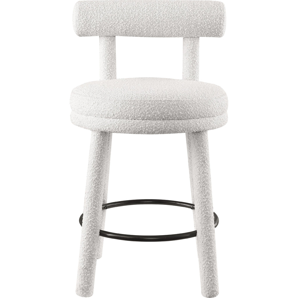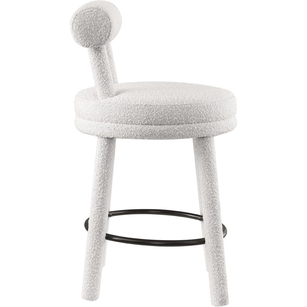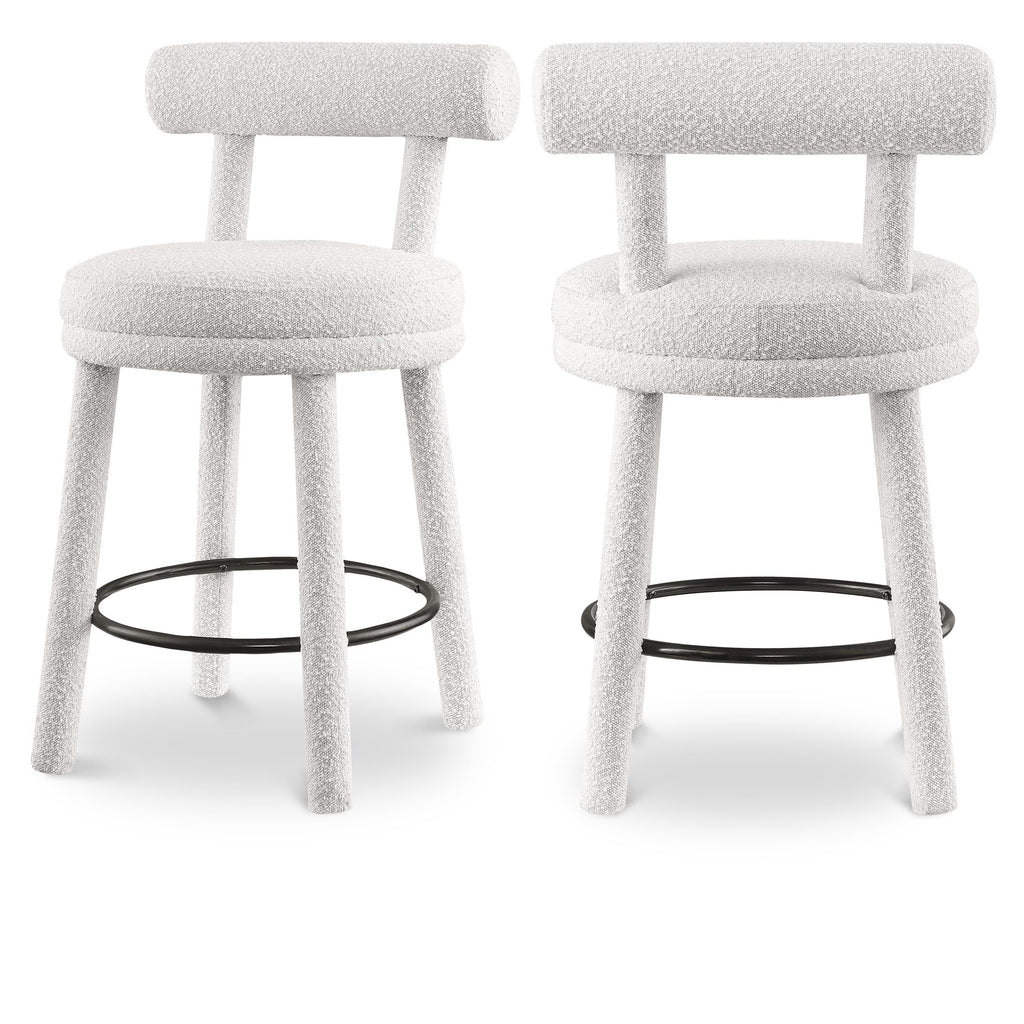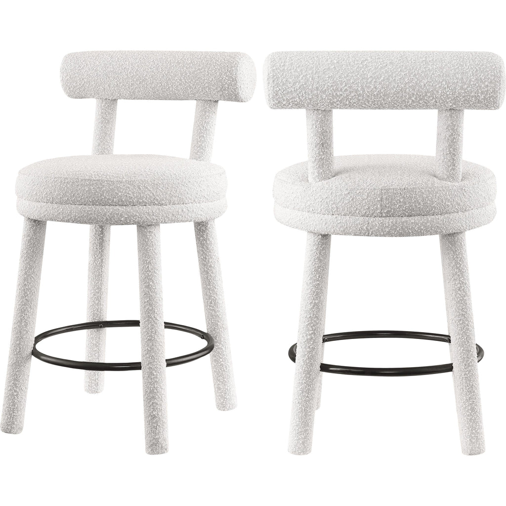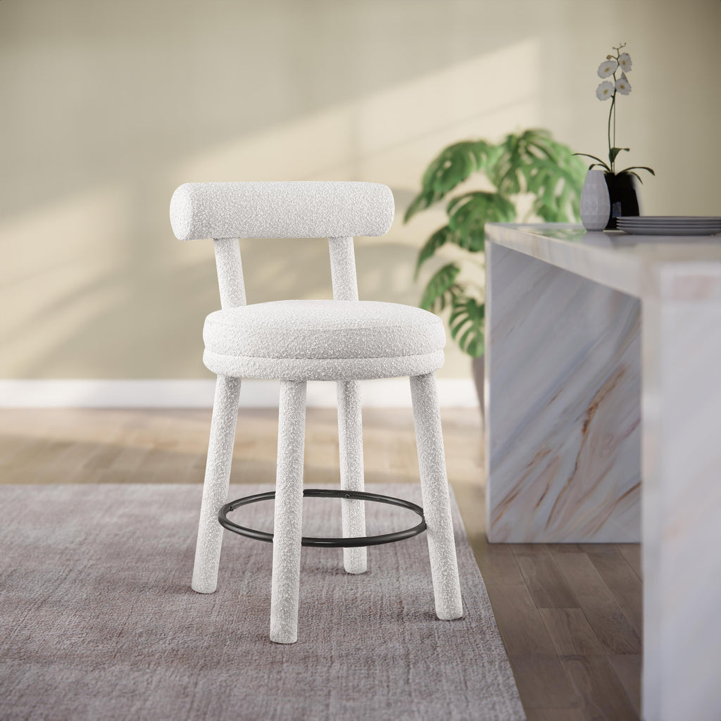 Make sure guests and family want to stay 'till closing time when you add these cream Parlor boucle fabric bar/counter stools to your space. This set of two counter-height stools boasts rich cream boucle fabric upholstery with rolled backs and plush seats for an inviting seating experience. These stools feature a solid wood frame and a convenient matte black metal footrest that encircles the bottom for resting your feet.