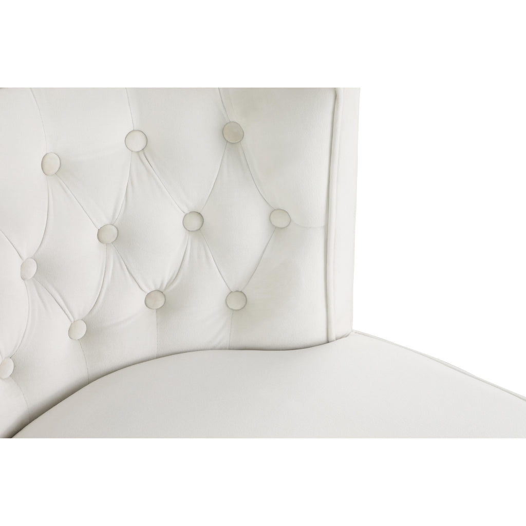 Make diners feel comfortable from the first course through dessert when you seat them in this Perry velvet dining chair. This handsome chair is covered in chic, plush cream velvet and features a button-tufted back for an elegant look that impresses visitors and family alike. The chair sits on espresso wood legs with metal caps in brushed gold for added elegance and refinement.