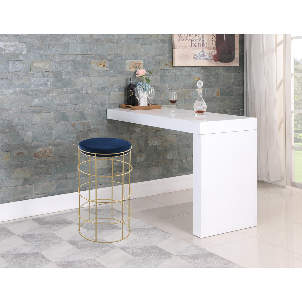 Looking to add industrial sleekness to your home kitchen or bar? This Rebar velvet bar stool fits the bill. This lovely stool is minimalist by design but offers a big style punch with its rich brushed gold finish and its plump seat cushion covered in navy velvet. The metal construction ensures that this stool is a long-lasting addition to your home kitchen or bar area.