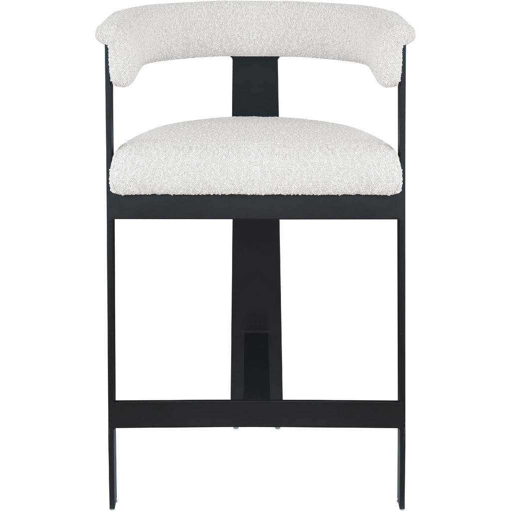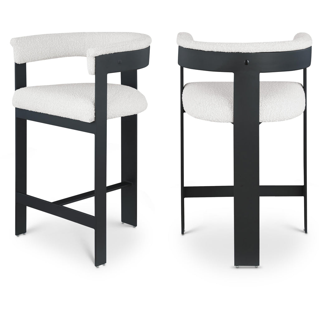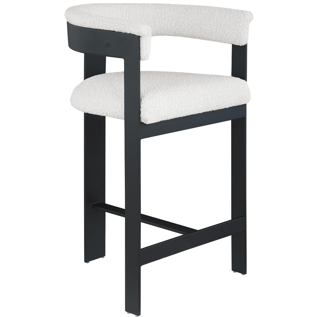 Update your kitchen counter or home bar with this cream Romeo boucle stool. It boasts a soft cream boucle seat and a curved back for comfortable and contemporary seating. The matte black metal frame ensures sturdiness and a sleek aesthetic, impressing family and guests alike. With its modern design, this stool effortlessly complements your space, making it a superb addition to your space.