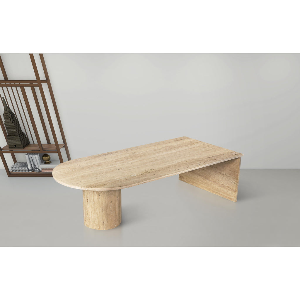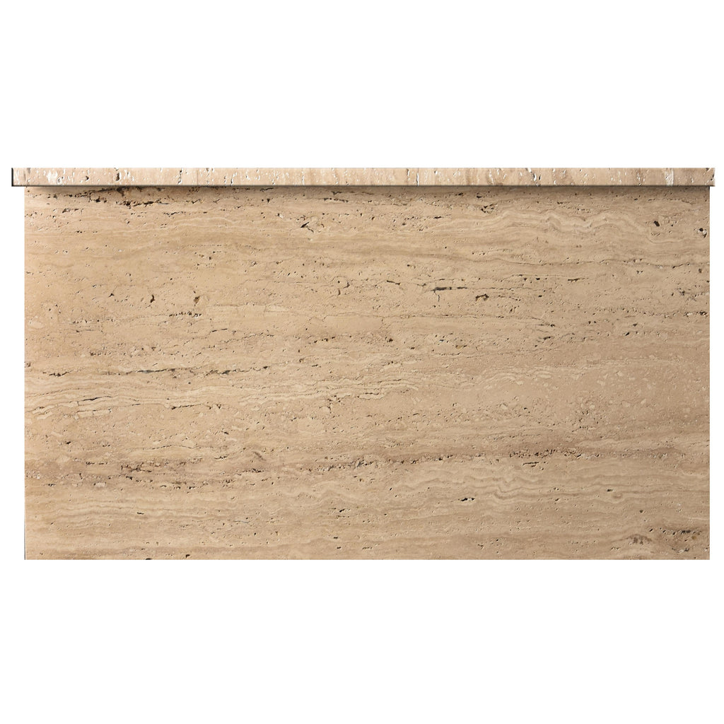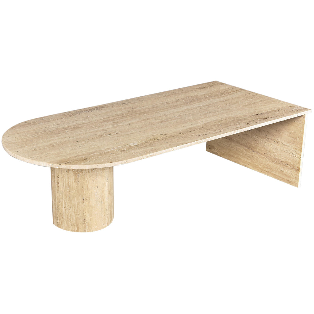 Raise the bar for elegance with this Salerno coffee table. This strikingly handsome table is carefully crafted by hand using genuine travertine for a look that oozes refinement, sophistication, and modernity. Art deco design elements create an eye-grabbing presentation while the natural travertine biege color makes the table a true stunner that guests can't help but admire. An expansive top gives you loads of room for displaying a seasonal centerpiece or setting up a Scrabble board on game night.