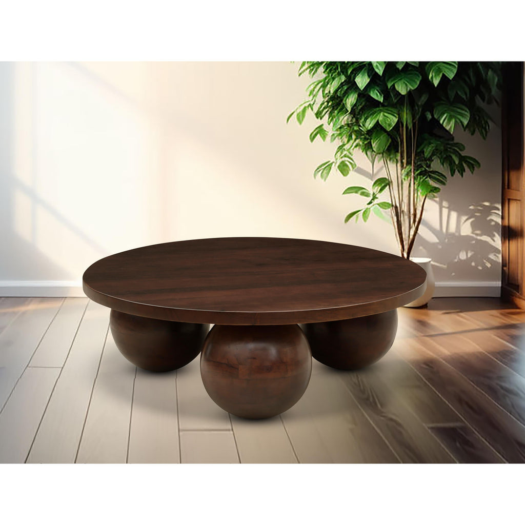 This beautifully crafted Spherical Coffee Table showcases a rich brown walnut finish and is constructed from solid acacia wood, a testament to durability and timelessness. Its versatility makes it perfect for all occasions, whether hosting guests or enjoying a peaceful evening at home. This coffee table is a stylish and functional addition to any living space and serves as a reminder that the things we bring into our homes should be both beautiful and practical.