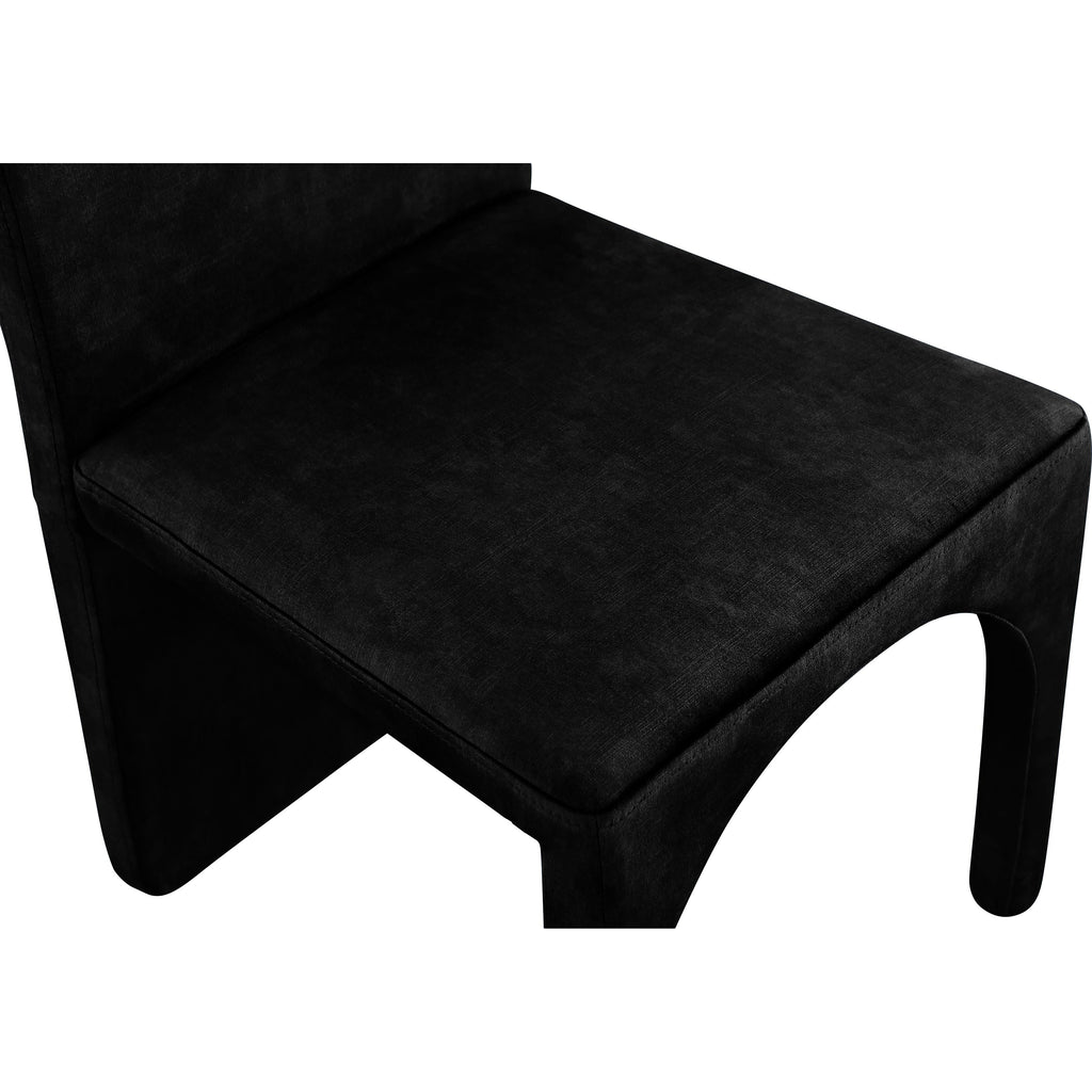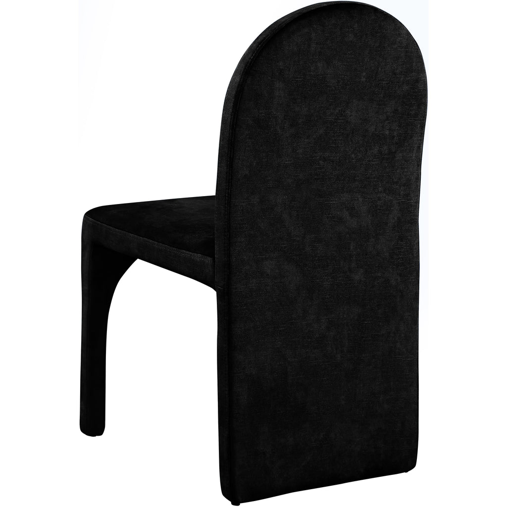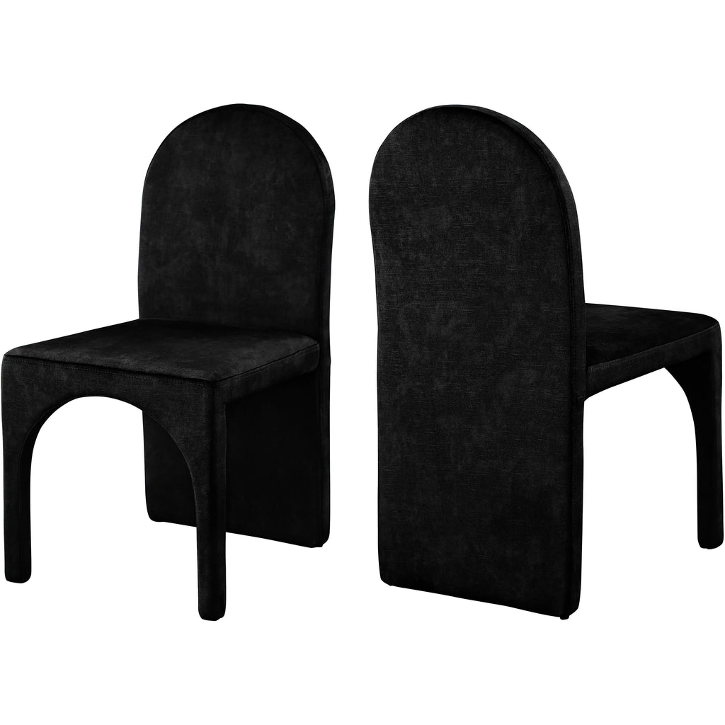 Turn your dining room into a regal haven with this Summer black velvet dining side chair. Featuring a luxurious black velvet upholstery, this fully upholstered side chair offers comfort and support while you enjoy your meals. Its steel frame ensures durability, so you can enjoy the chair for years to come. Its arched, contemporary design is both unique and fashionable, providing your dinner guests with a conversation piece as well as a comfortable place to sit.