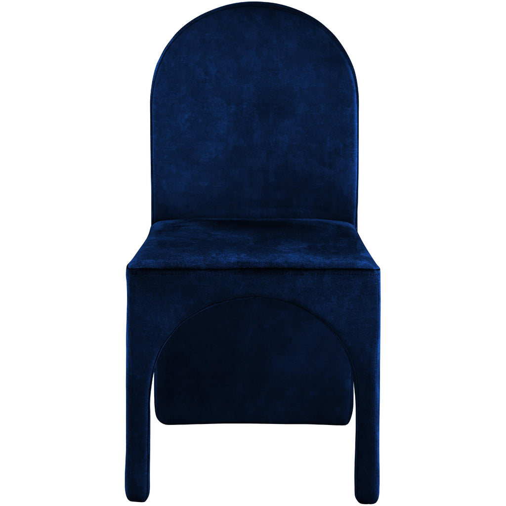 Turn your dining room into a regal haven with this Summer navy velvet dining side chair. Featuring a luxurious navy velvet upholstery, this fully upholstered side chair offers comfort and support while you enjoy your meals. Its steel frame ensures durability, so you can enjoy the chair for years to come. Its arched, contemporary design is both unique and fashionable, providing your dinner guests with a conversation piece as well as a comfortable place to sit.