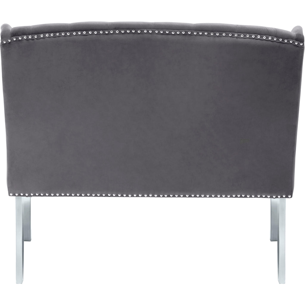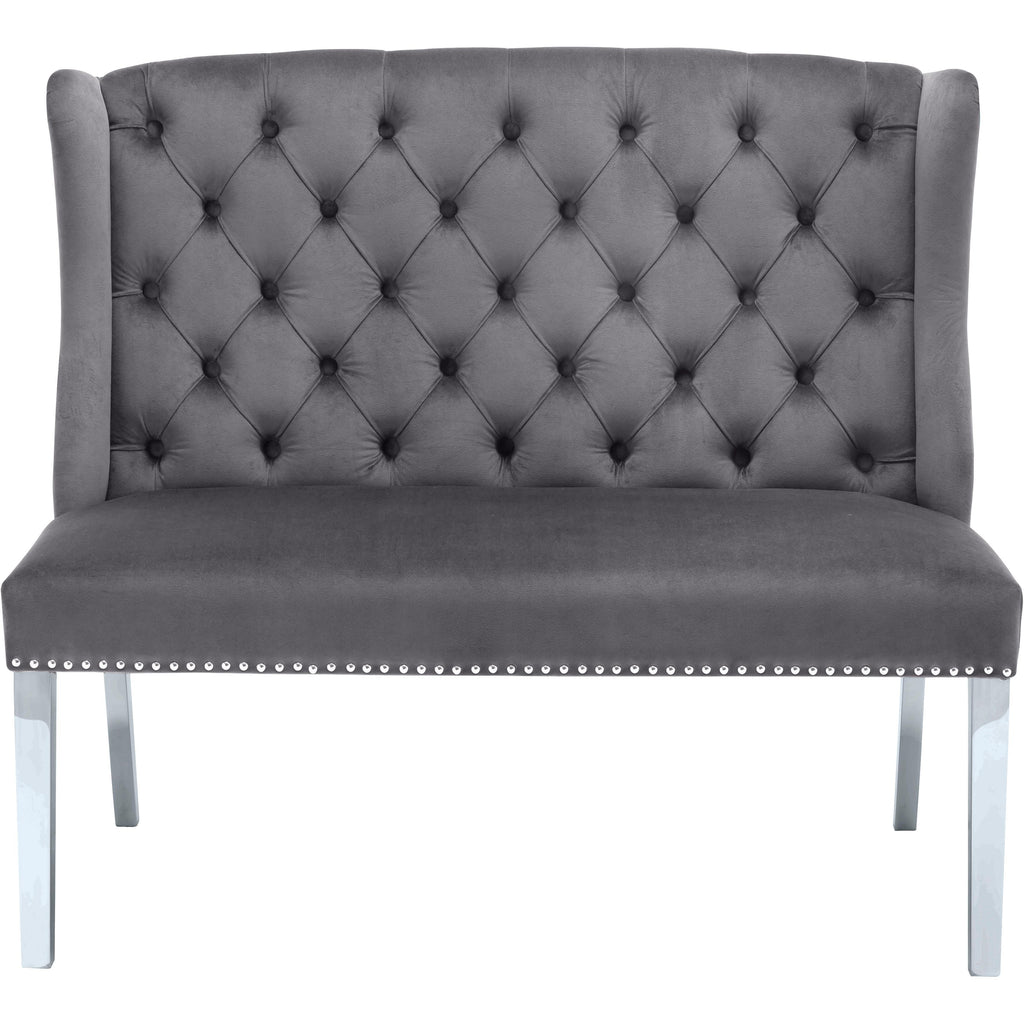 Keep a dinner guest feeling like an MVP in this Suri velvet bench. This chair features soft grey velvet upholstery that's svelte to the touch and sleek against the skin. Deep button tufting on the back adds an air of elegance and affluence to the look of this chair, while chrome nailheads, and chrome stainless steel legs gives it a definitive modern, contemporary flair.