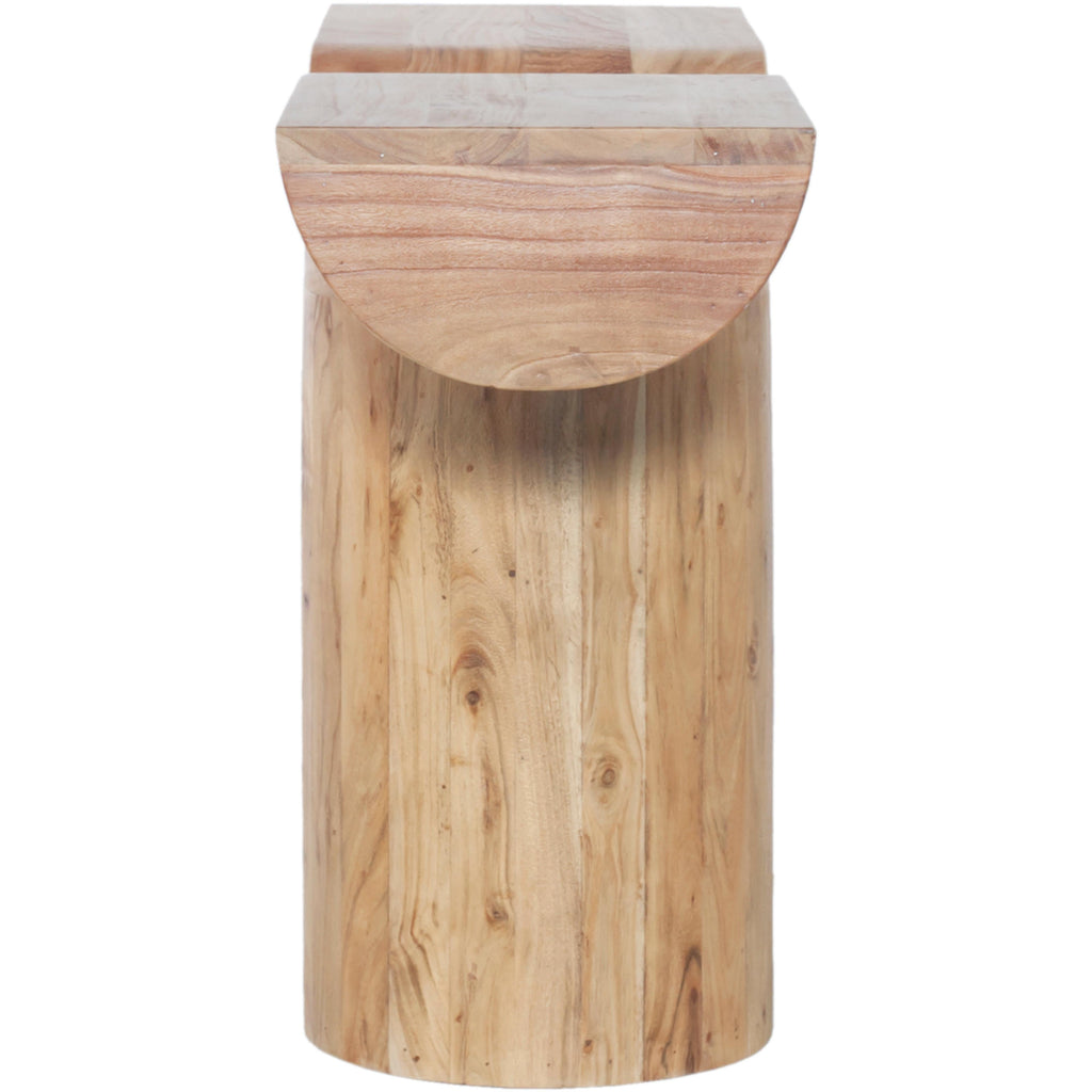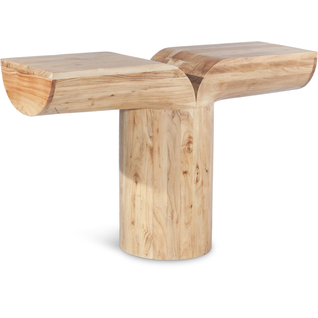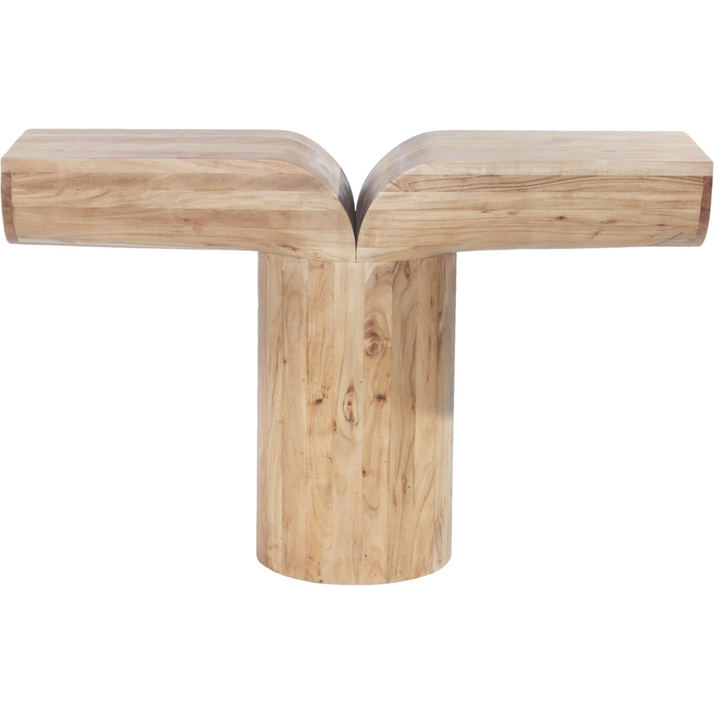 Enliven your space with the oak Tee console table, crafted from solid acacia wood and featuring a sleek natural oak finish. Its art deco design and eye-catching T-shape make it a stunning addition for displaying collectibles or other items. This hard-to-ignore table complements various decor styles, offering both artful form and valuable function. Bring a touch of sophistication and a focal point to your living area with the Tee console table, a versatile and stylish choice for showcasing your cherished items.