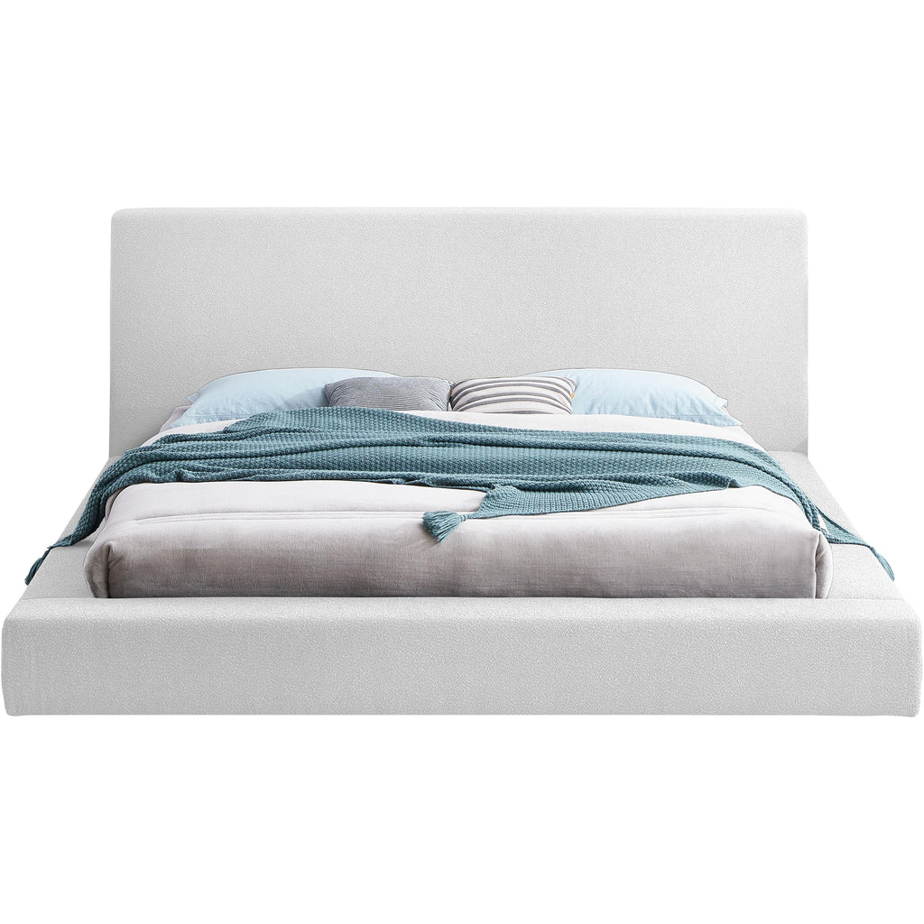 Go for an impressive new look in the bedroom with this Terra boucle fabric bed. This low-profile bed features a slightly high headboard along with thick side rails and footboard-all upholstered in rich white boucle fabric for a luxe look you'll fall in love with. This contemporary bed is bound to cause a stir in the master suite or other bedroom where it instantly becomes the star of the show when paired with the furnishings of your choice.