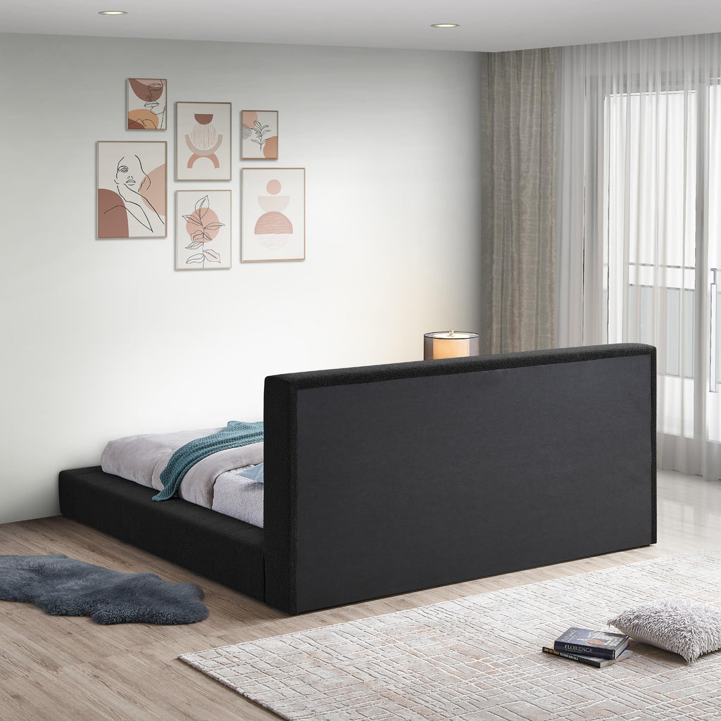 Go for an impressive new look in the bedroom with this Terra boucle fabric bed. This low-profile bed features a slightly high headboard along with thick side rails and footboard-all upholstered in rich black boucle fabric for a luxe look you'll fall in love with. This contemporary bed is bound to cause a stir in the master suite or other bedroom where it instantly becomes the star of the show when paired with the furnishings of your choice.