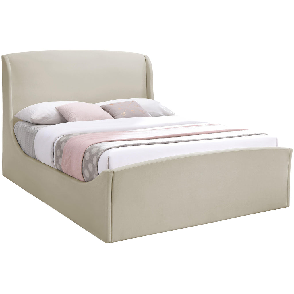Snuggle up in sophisticated style when you bring home this cream Tess queen-sized bed. This bed checks all the boxes when it comes to elegance and refined living, with its soft beige velvet fabric upholstery and curvy shape. A tall headboard gives the bed a commanding presence in your room, ensuring it's the center of attention.