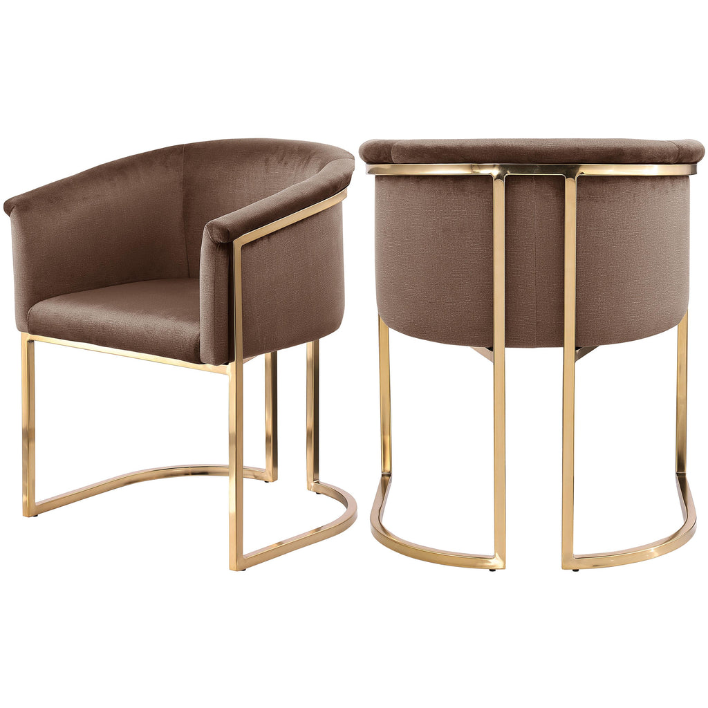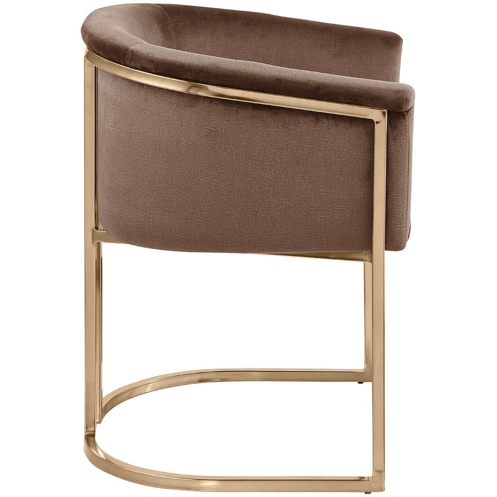 Wine them and dine them when you seat family and guests in this Tierra velvet dining chair. Strikingly handsome by design, this chair features a barrel-style seat that cradles the body in comfort for small intimate dinners served in your casual dining room. A brushed brass finish on the all-metal frame adds elegance and refinement to the design, so your space takes on a sophisticated vibe in an instant.