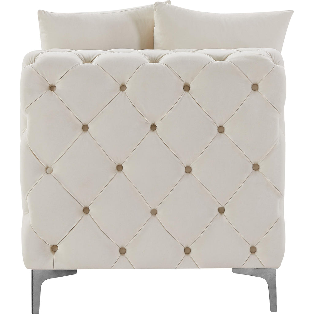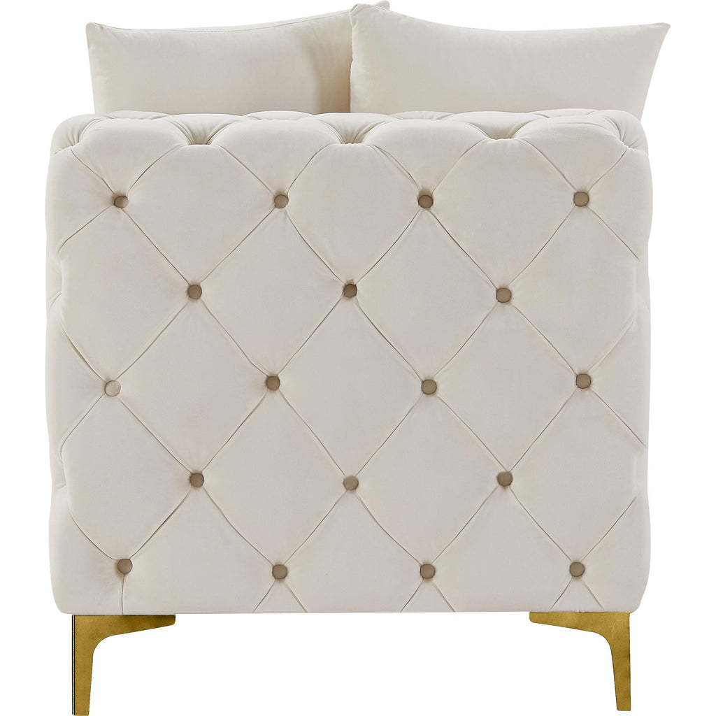 Lean back and relax on this Tremblay armless chair. Featuring soft cream velvet upholstery with deep button tufting, this chair adds a bold touch to any living space. A complete set of gold and chrome legs are included, so you can change it up to suit your home decor. This armless chair is modular, so you can create infinite configurations with it, which are easily attached using the latch underneath the frame. Its contemporary design is perfect for the modern home.