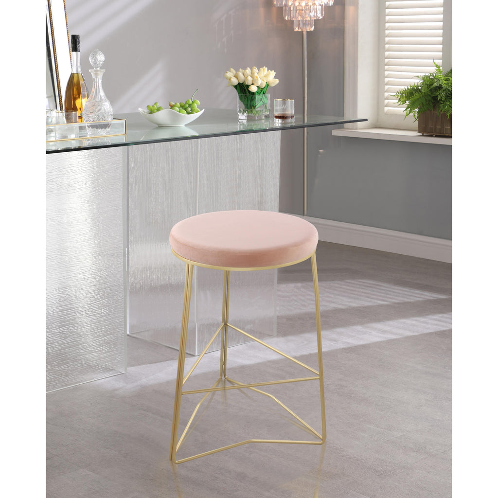 Remake the look of your kitchen counter with the addition of this Tres velvet counter stool. This handsome stool is both elegant and simple at the same time, making it a great addition to minimalist decor. The soft pink velvet upholstery on the plump seat cushion is welcoming and comfortable, so you can enjoy sitting to the max. The stool rests on rich brushed gold metal legs for a solid, sturdy foundation.