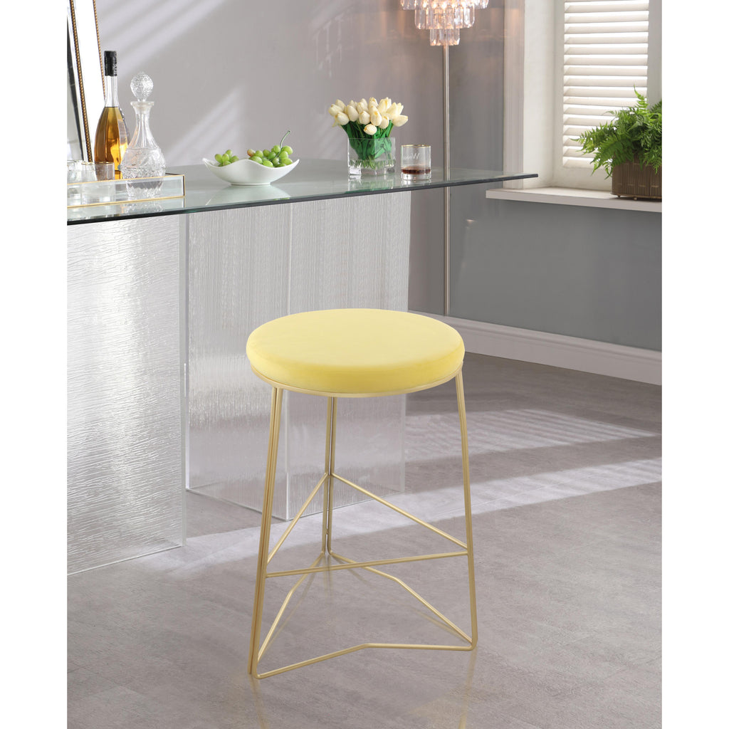 Remake the look of your kitchen counter with the addition of this Tres velvet counter stool. This handsome stool is both elegant and simple at the same time, making it a great addition to minimalist decor. The soft yellow velvet upholstery on the plump seat cushion is welcoming and comfortable, so you can enjoy sitting to the max. The stool rests on rich brushed gold metal legs for a solid, sturdy foundation.