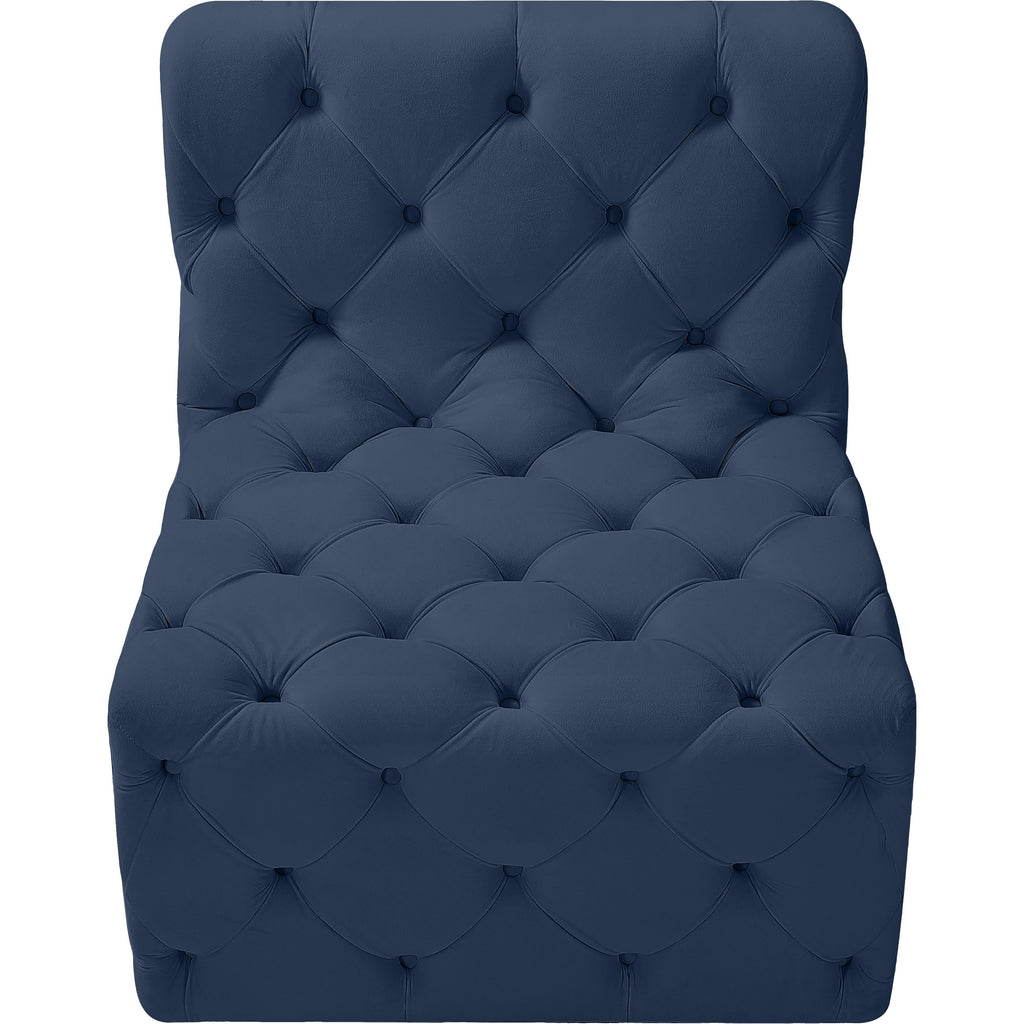 Mix and match the pieces in this beautiful collection to create the ideal seating group for your gang. Tufting on every square inch of these seating pieces adds an elegant and modern look to your room while helping extend the durability of each unit. Soft navy fabric makes adding your seating options alongside your existing furnishings an easy feat. Choose multiple pieces to build out the seating you need and want.