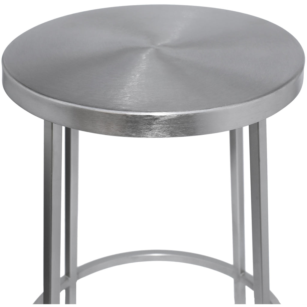 Return back to basics with the Tyson counter stool. This handsome stool features a brushed silver iron finish for elegance and sophistication. The stool is counter height, making it easy to use at your kitchen counter or in the home bar area. A foot ring around the perimeter of the stool's bottom gives it added stability and a place to rest your feet while you sit.