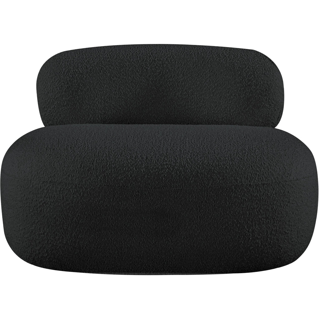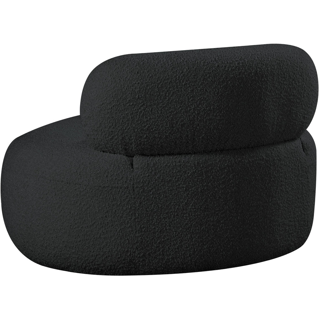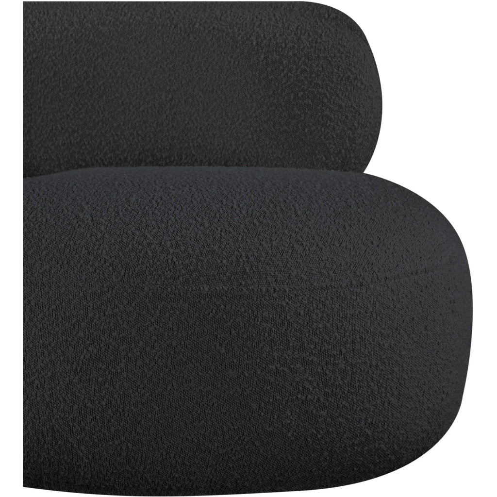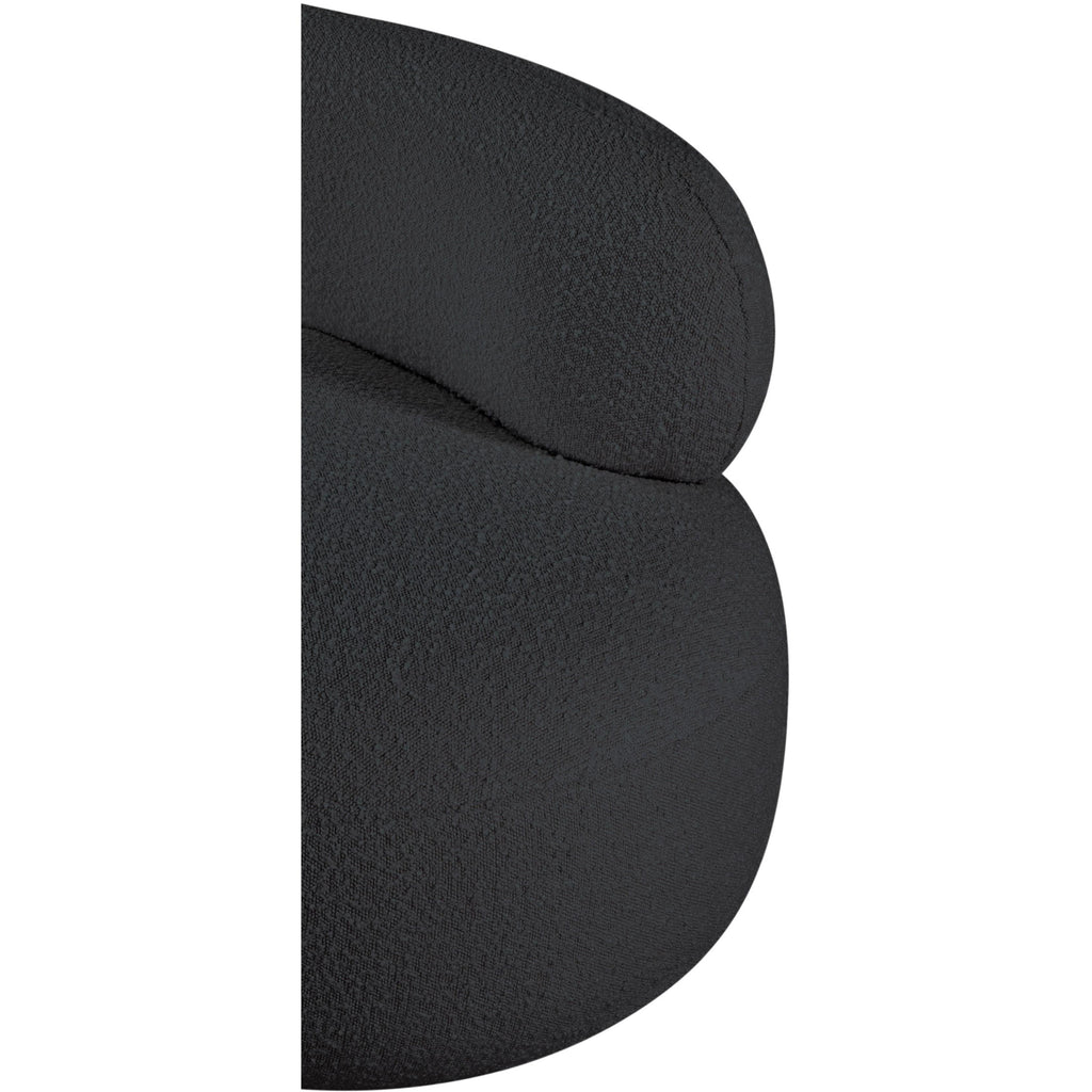 Discover timeless beauty with this Venti boucle fabric living room chair that's designed to elevate your interior space. This exceptionally crafted art-deco-inspired chair is part of the Venti collection and boasts an alluring curved shape to add elegance and refinement to your room. Upholstered in rich black boucle fabric, the chair has a plush texture that's oh-so-cozy against the skin. The art deco styling makes it a real statement piece, whether you place it in your living room, home office, or your favorite reading nook.