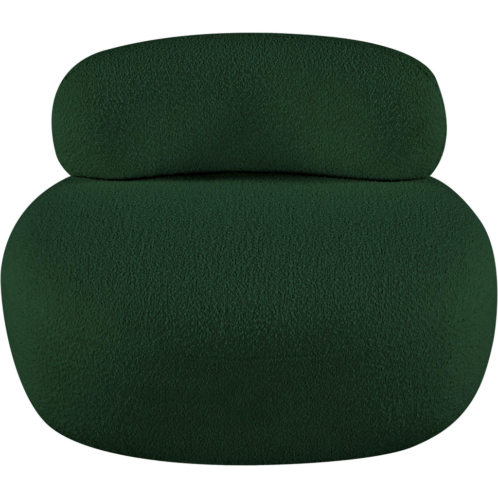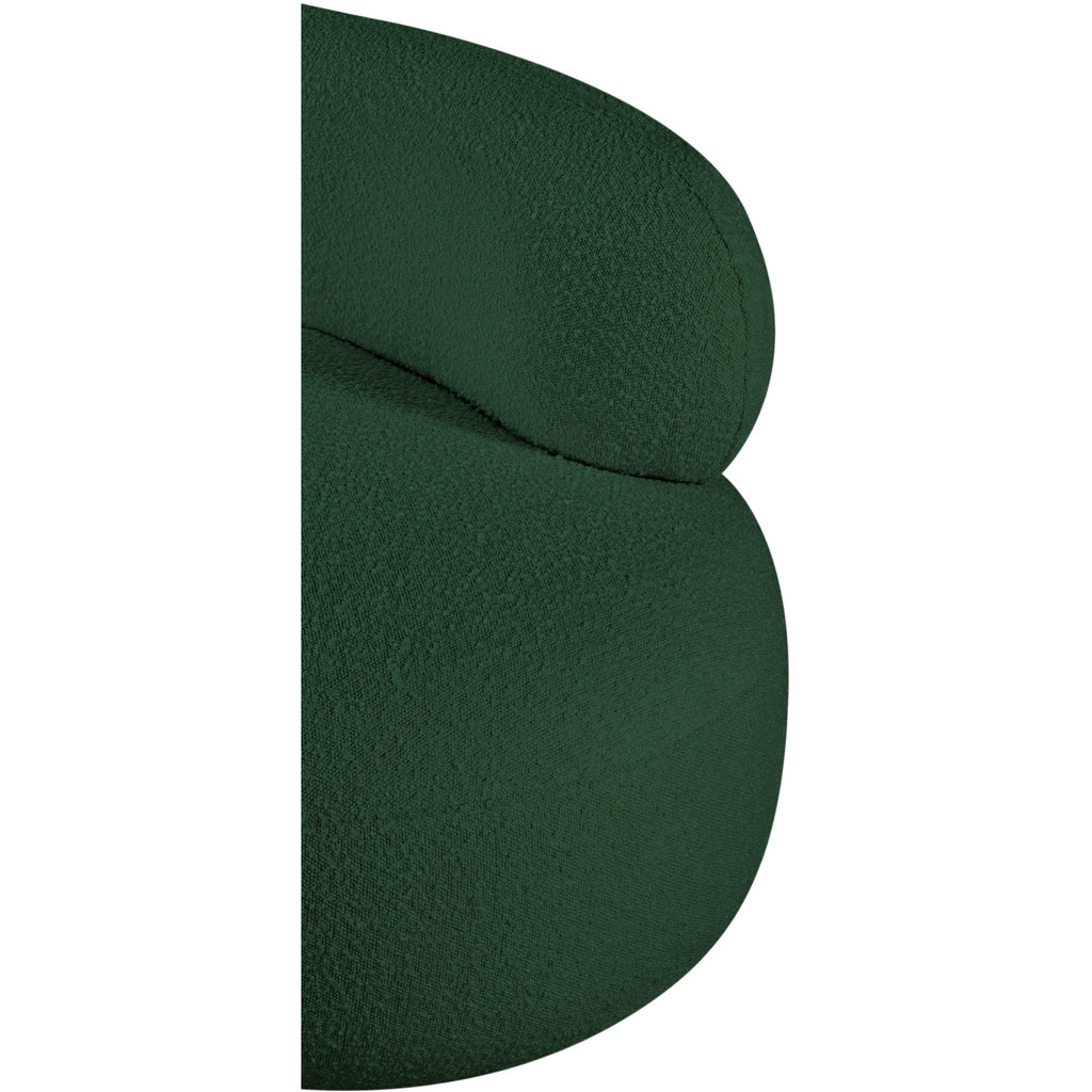 Discover timeless beauty with this Venti boucle fabric living room chair that's designed to elevate your interior space. This exceptionally crafted art-deco-inspired chair is part of the Venti collection and boasts an alluring curved shape to add elegance and refinement to your room. Upholstered in rich green boucle fabric, the chair has a plush texture that's oh-so-cozy against the skin. The art deco styling makes it a real statement piece, whether you place it in your living room, home office, or your favorite reading nook.