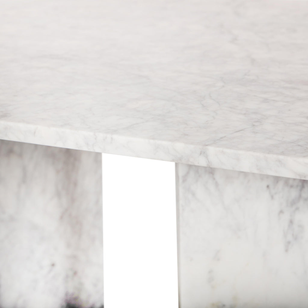 Elevate the look of your space with this handsomely crafted Verona coffee table. Made by hand using genuine marble that lasts and lasts for years to come, this table exudes refinement and sophistication. The white marble with light grey veining brings contemporary panache to your room, while the uniquely shaped base instantly draws the eye, making the table a certain showstopper. Pair this table with other items in the Verona collection for a cohesive presentation.