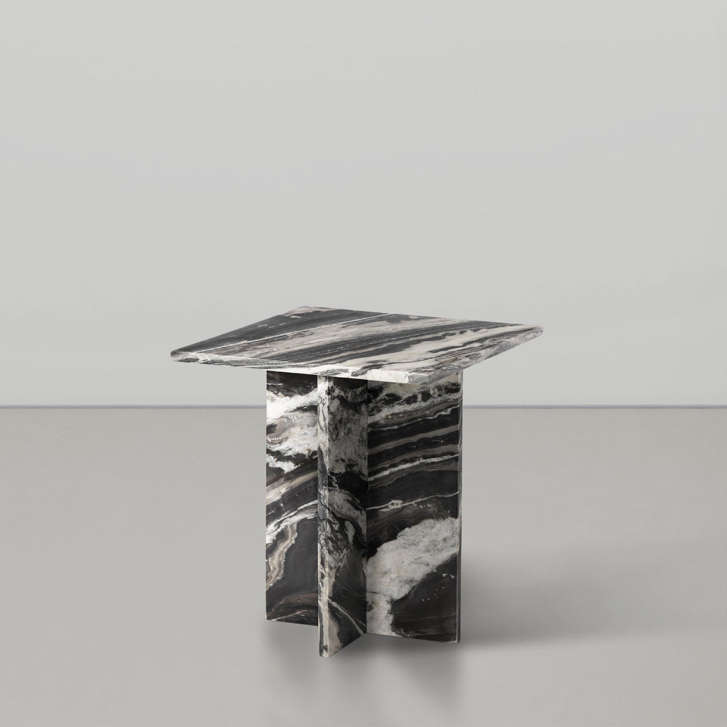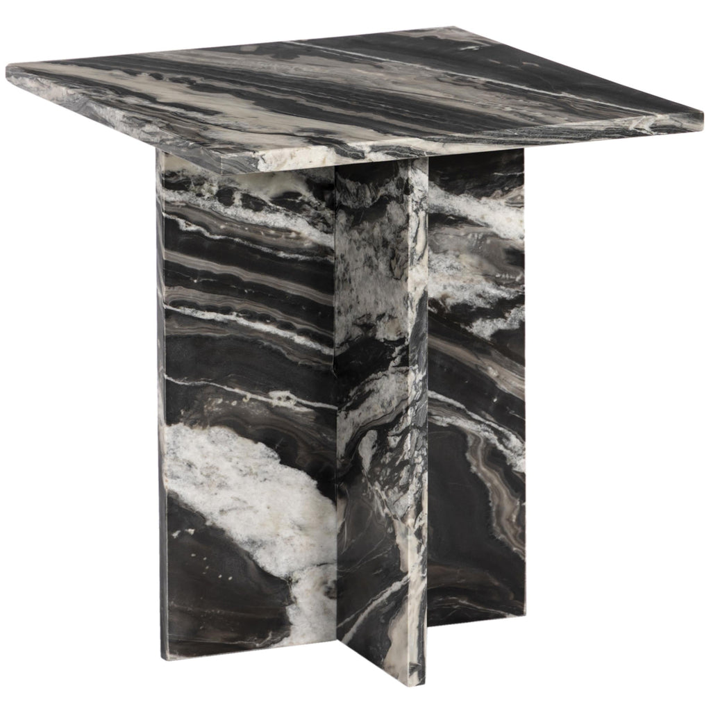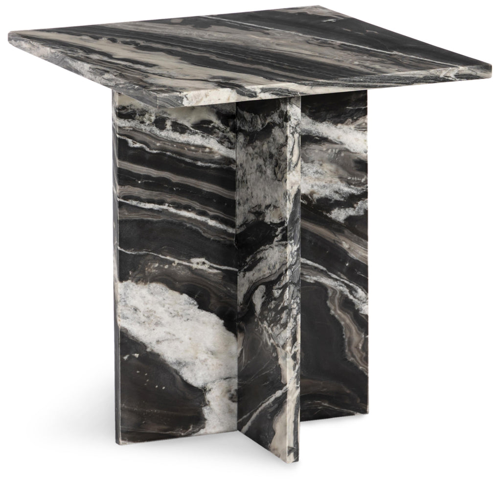 Elevate the look of your space with this handsomely crafted Verona end table. Made by hand using genuine marble that lasts and lasts for years to come, this table exudes refinement and sophistication. The black marble with light grey veining brings contemporary panache to your room, while the uniquely shaped base instantly draws the eye, making the table a certain showstopper. Pair this table with other items in the Verona collection for a cohesive presentation.