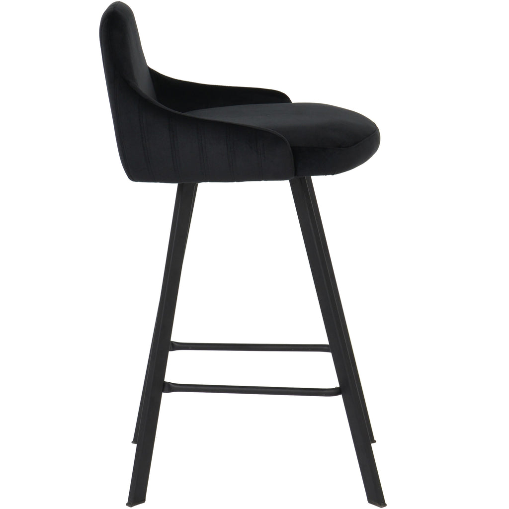 Make a bold statement in your dining space with this Viviene black velvet stool. Plush black velvet upholstery gives it a sleek, chic look while providing a comfy, soft place to sit and enjoy brunch at your breakfast bar, while matte black legs provide sturdy support while adding dramatic flair. This counter height stool is perfect for any contemporary dining decor and can be used at a breakfast bar or tall dining table.