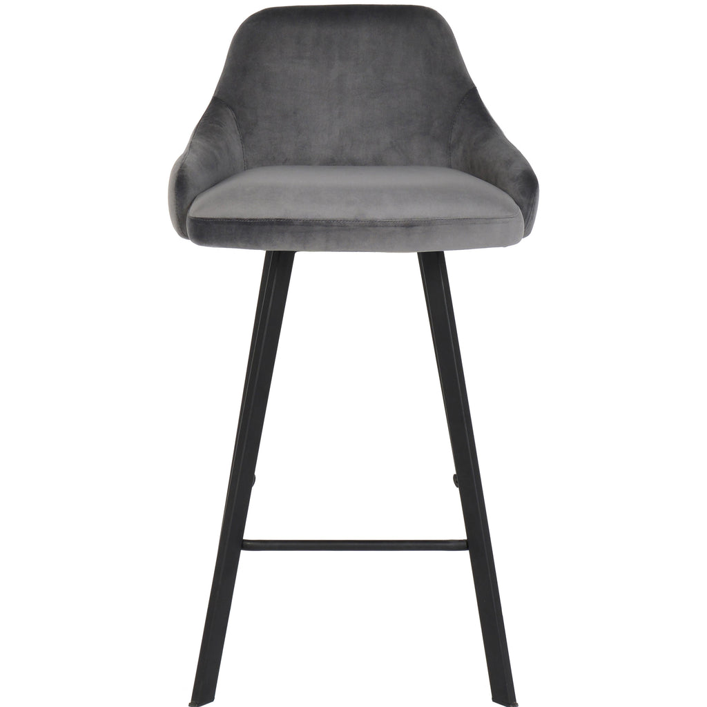 Make a bold statement in your dining space with this Viviene grey velvet stool. Plush grey velvet upholstery gives it a sleek, chic look while providing a comfy, soft place to sit and enjoy brunch at your breakfast bar, while matte black legs provide sturdy support while adding dramatic flair. This counter height stool is perfect for any contemporary dining decor and can be used at a breakfast bar or tall dining table.