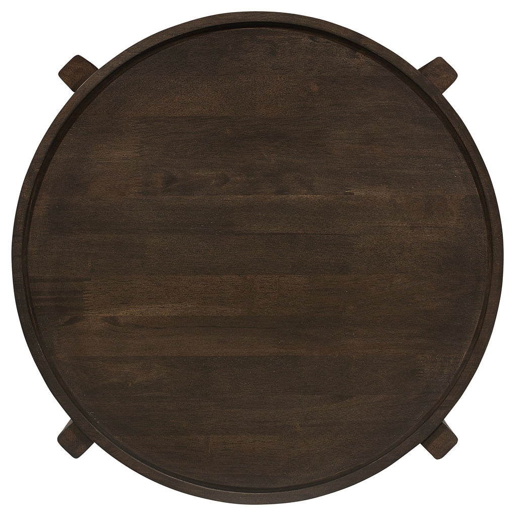 Gathering around this coffee table set creates a sense of connection and balance. Crafted from solid rubberwood, the dark brown finish adds a rich, natural warmth. The recessed tops invite use, while the intersecting legs offer sturdy support and a striking architectural element. Designed to anchor your living room, these occasional tables provide the perfect place for decor, refreshments, or casual conversations. Their durability and timeless style ensure theyÕll remain a centerpiece for years to come.