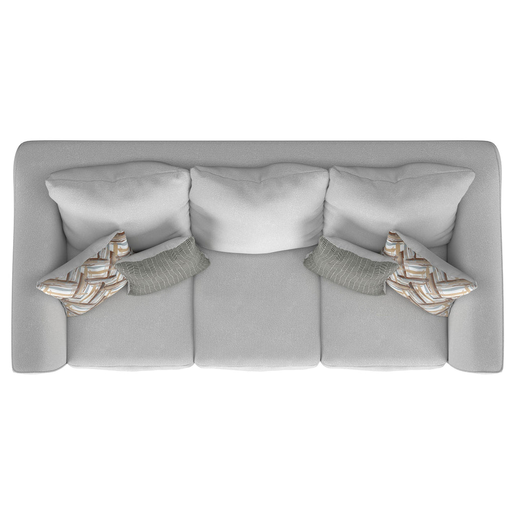 Gracefully blending timeless design and comfort, this sofa anchors any living space with a clean silhouette and flared arms. Plush foam cushions provide supportive comfort, while tailored upholstery adds a refined touch. Its inviting form and accent pillows create an effortlessly balanced look suited for casual and modern interiors alike. A perfect centerpiece for conversation or relaxation, this sofa elevates comfort with enduring style.
