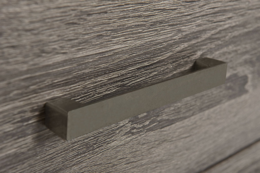 Upgrade your storage options for clothing and accessories with this transitional four-drawer chest. It delivers restrained, understated style with organic appeal, owing to its brown oak wood grain finish. Laminate surfaces add durability and resistance to scratches and dents from everyday wear and tear. Mitered trim surrounds the front of the case, while angular block legs add visual appeal and precision. Bar handles complete the look with a touch of smooth contrast.