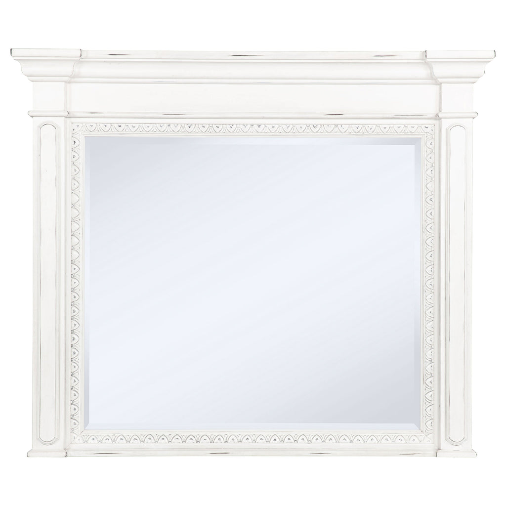 Steeped in elegance and shaped by thoughtful detail, this bedroom set captures the charm of timeless design. Crown moldings and carved accents highlight each piece, softened by a vintage white finish that whispers of age and grace. Hidden features like dual reading lights and jewelry trays offer modern convenience, while traditional construction ensures lasting durability. Crafted from poplar and engineered wood, the set brings classic character to restful spaces.